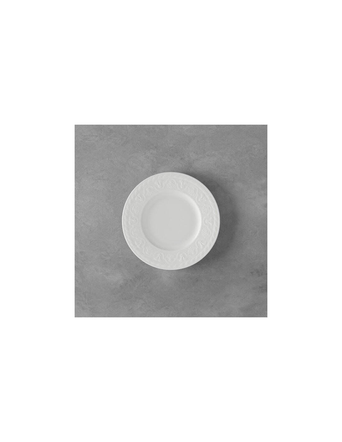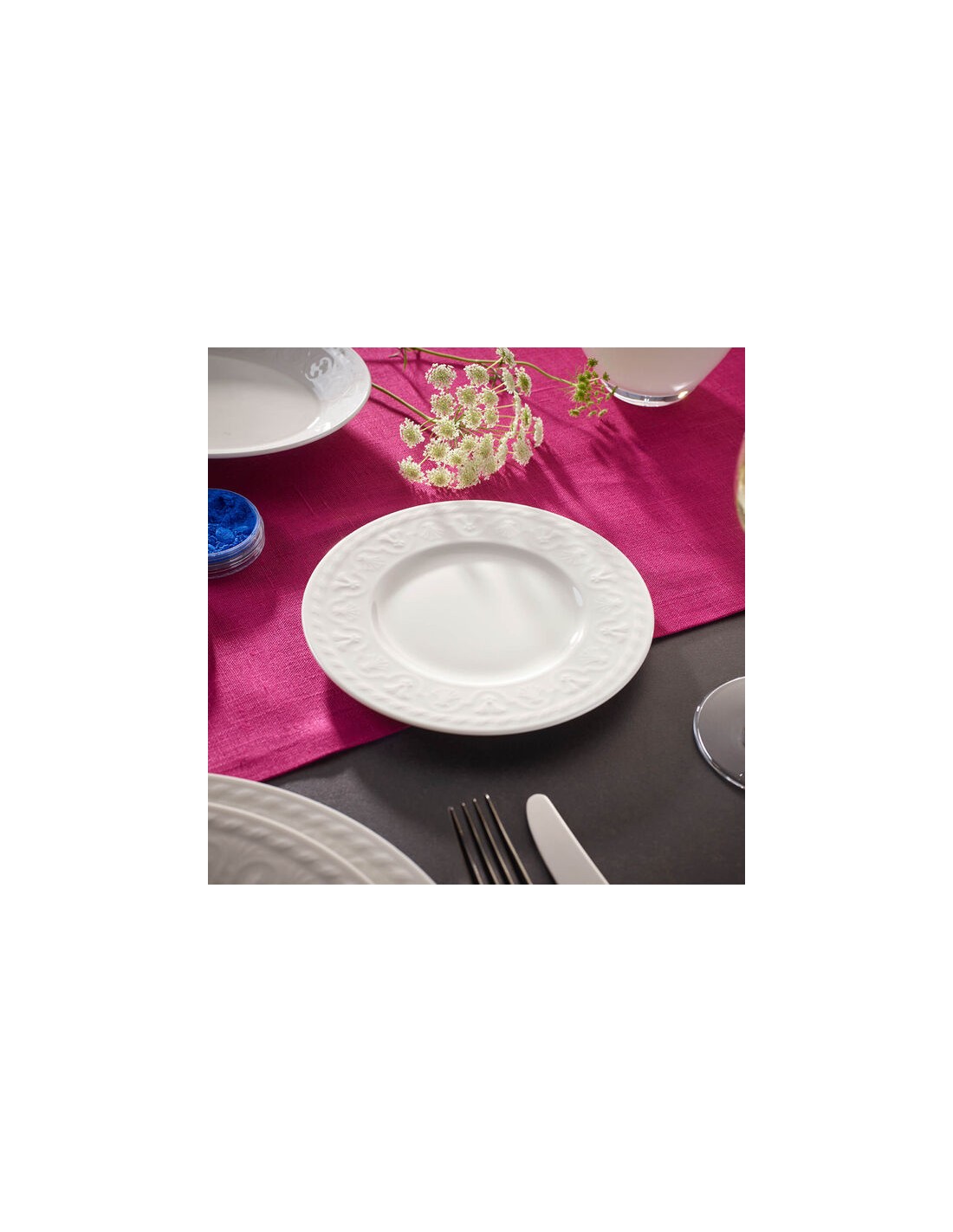 Cellini cuenta con delicados detalles en relieve sobre formas suaves y blancas, celebrando la arquitectura renacentista. La colección aporta una elegancia clásica a su mesa con su gracia tradicional. Este versátil plato para la cena también puede utilizarse para servir fruta o pasteles.