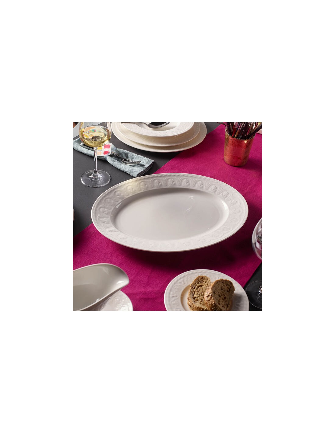 Cellini cuenta con delicados detalles en relieve sobre formas suaves y blancas, celebrando la arquitectura renacentista. La colección aporta una elegancia clásica a su mesa con su gracia tradicional. Este versátil plato para la cena también puede utilizarse para servir fruta o pasteles.