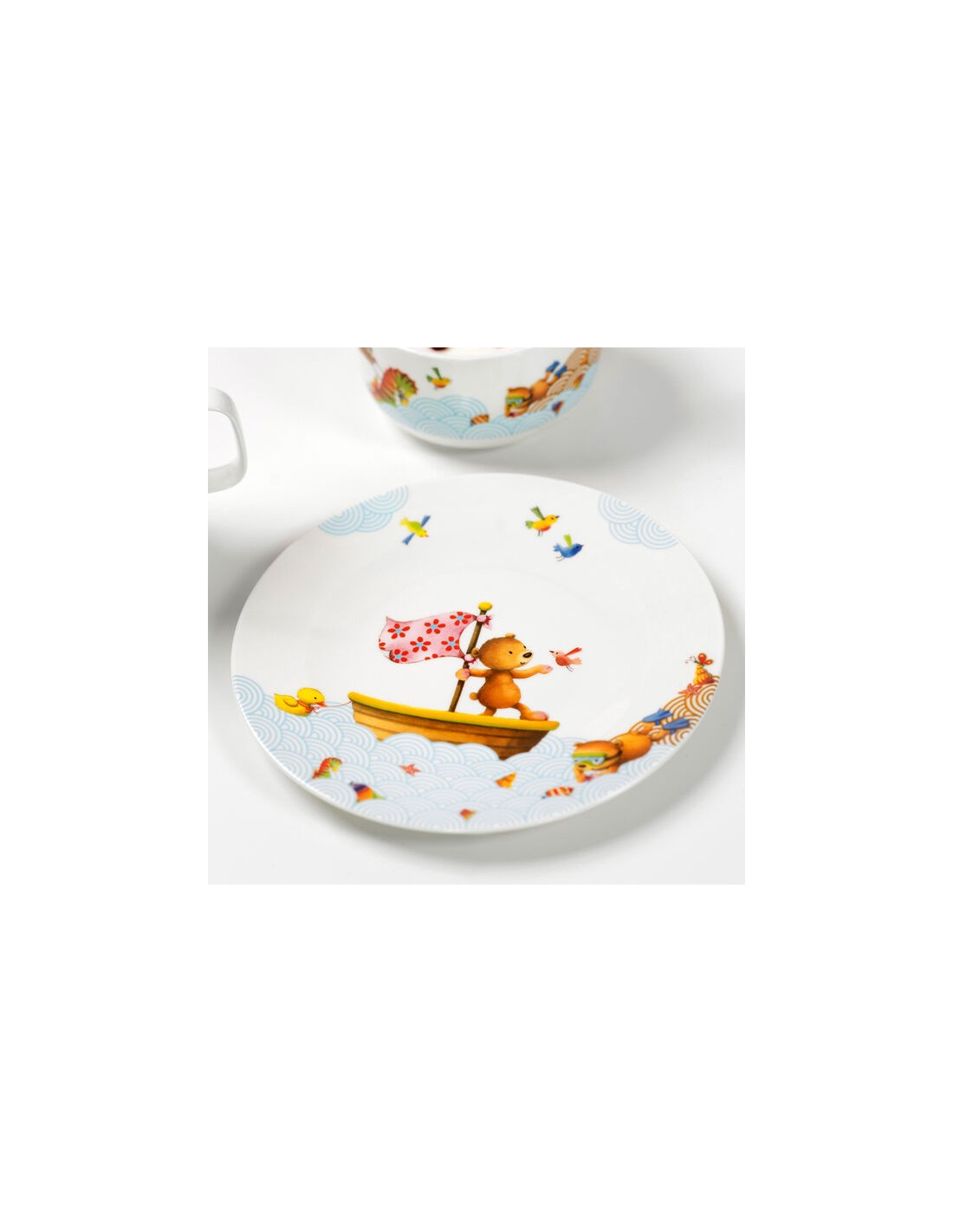Verano, sol, arena y muchas aventuras emocionantes: la vajilla infantil de la colección Happy as a Bear hace que comer sea el doble de divertido. El juego infantil de 3 piezas se compone de un plato llano, un bowl de cereal y una práctica taza.