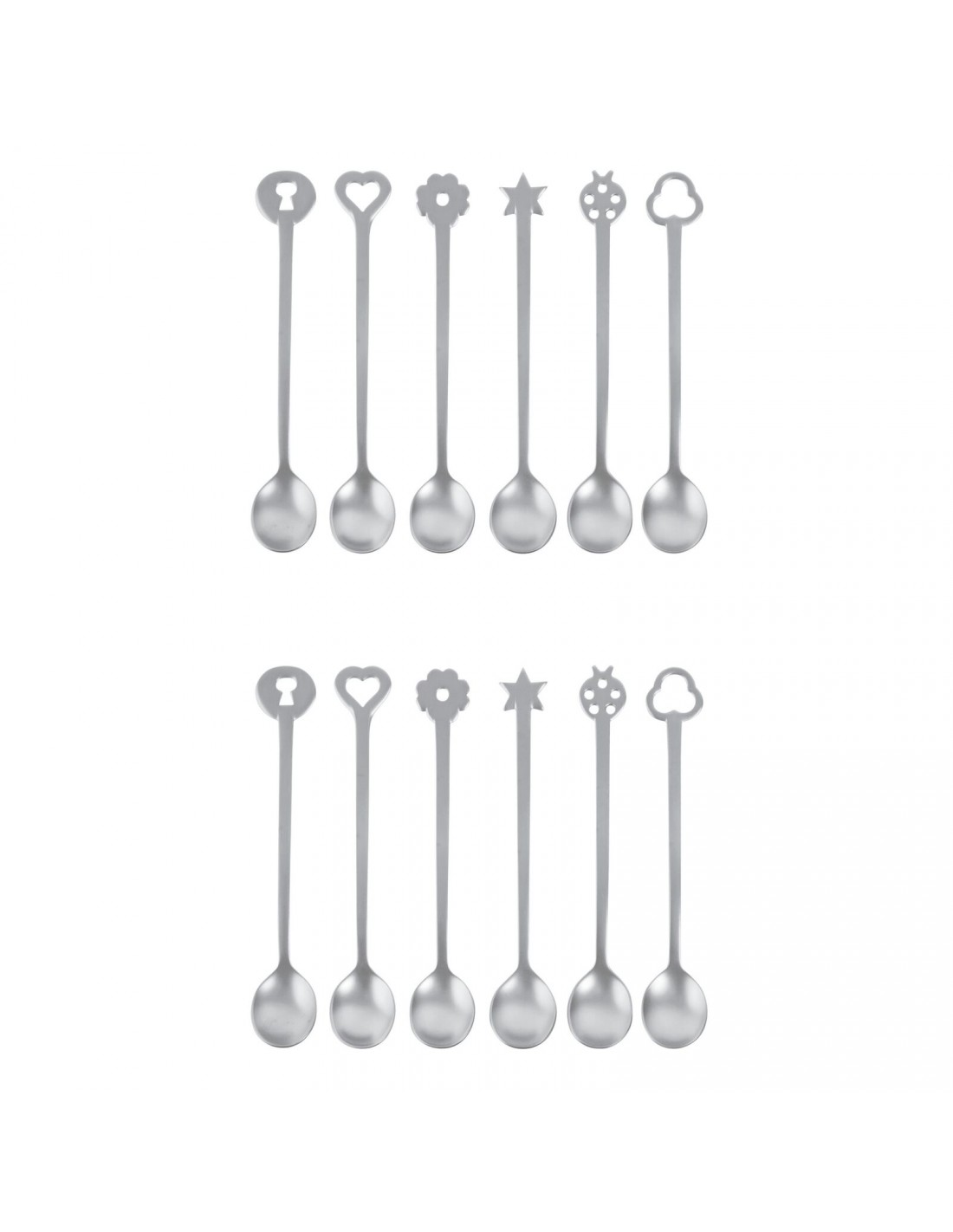 - Juego de cucharas con 12 piezas, cada una con un terminal diferente.