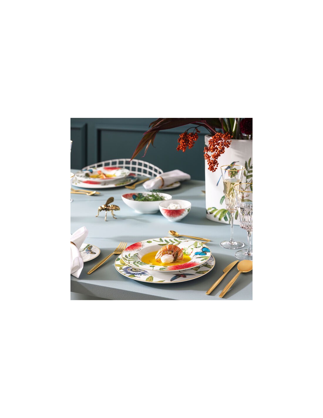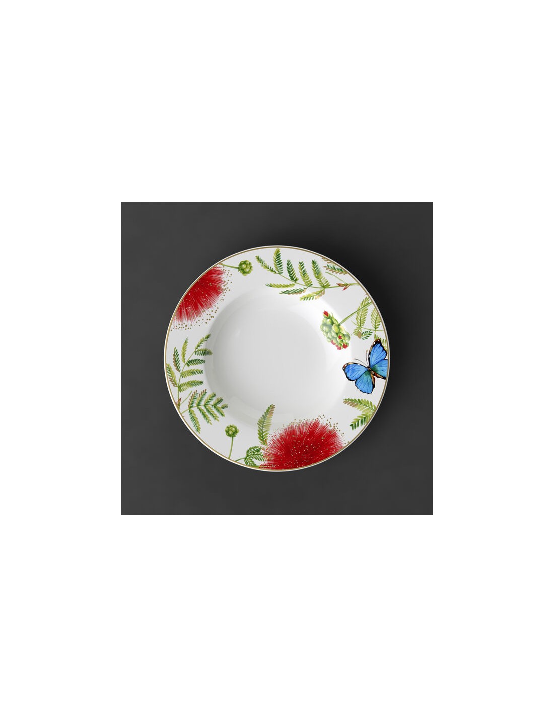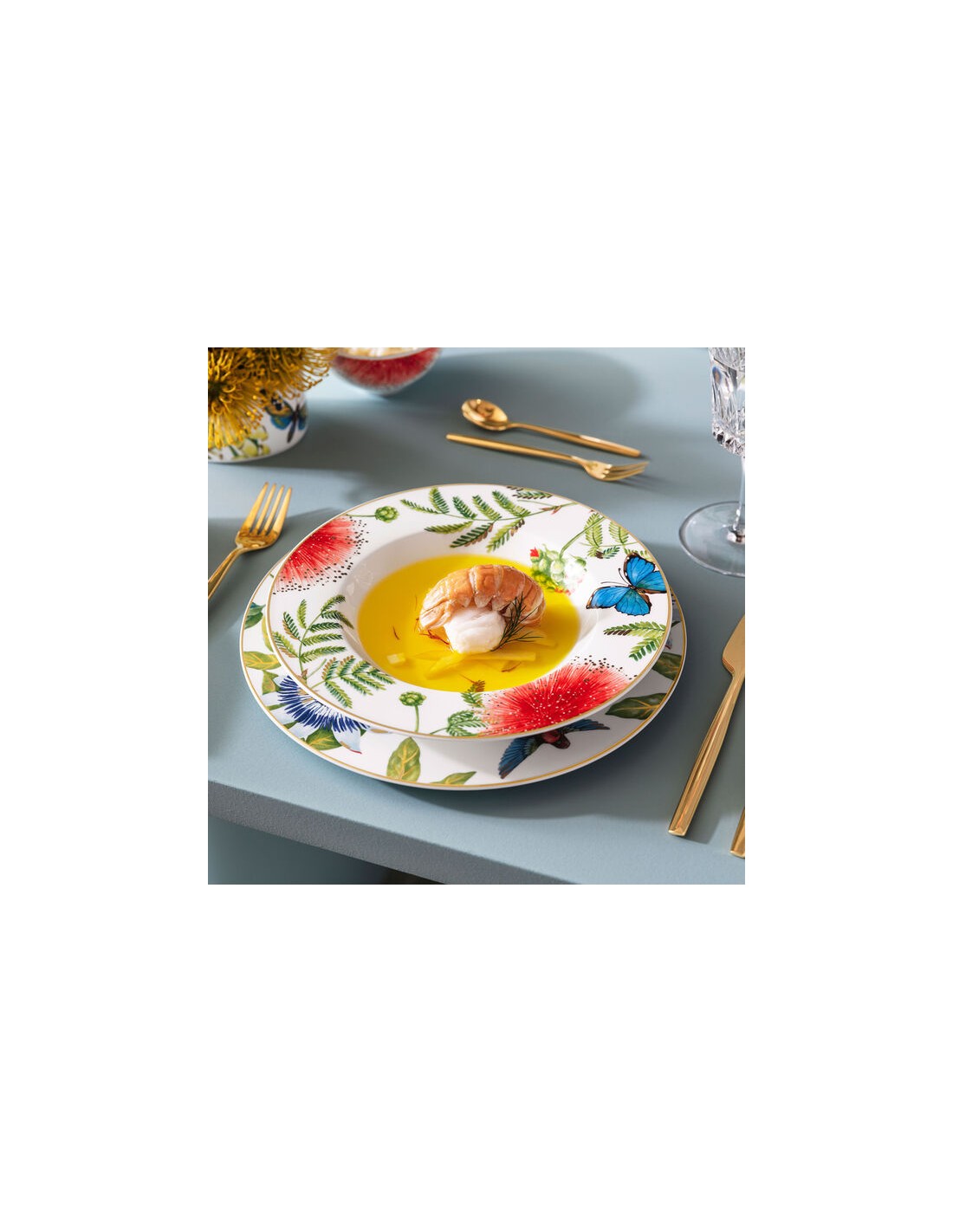 Formas inusuales y decoraciones exóticas ricamente detalladas en colores brillantes hacen que la colección Amazonia Anmut de Villeroy & Boch sea realmente llamativa. Puede servir a sus invitados guisos, sopas o caldos con especial refinamiento en este práctico y creativo plato hondo. Mímate a ti mismo y a los demás con una vajilla de porcelana fina.