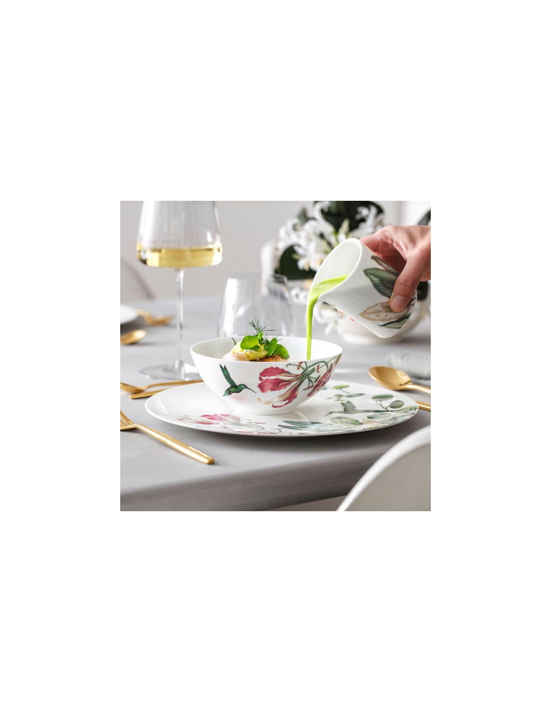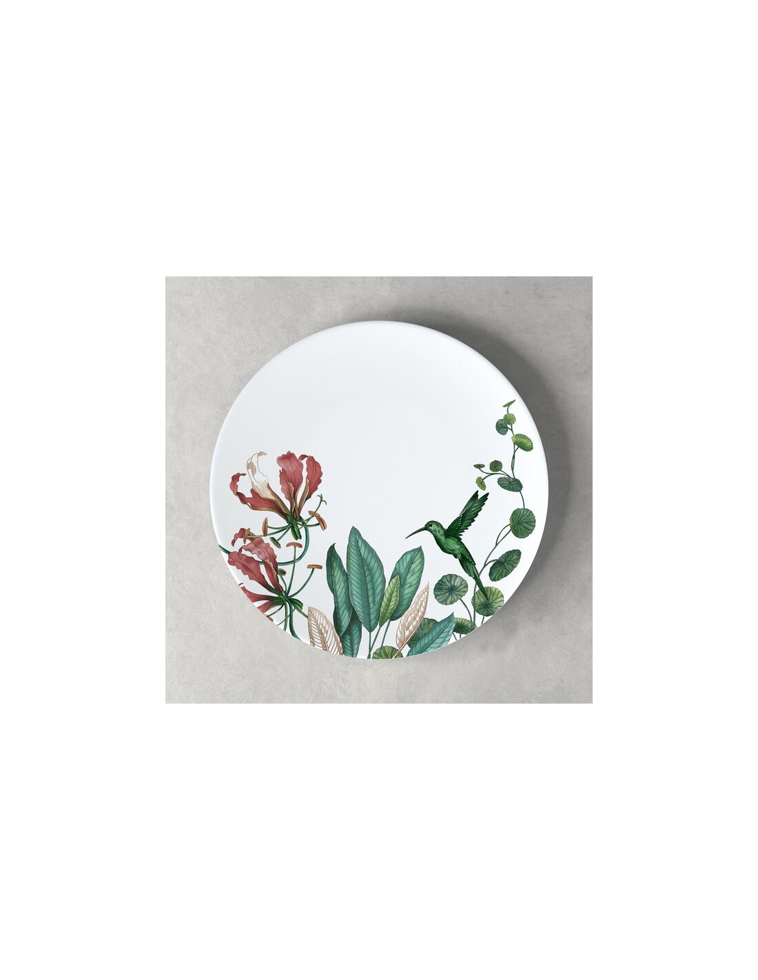 Inspirado en la belleza de Avarua, el diseño Avarua rinde homenaje a los viajes del navegante y explorador James Cook y cuenta la historia de su descubrimiento con un toque artístico. El aspecto tropical se completa con finas líneas doradas que evocan un fantástico efecto tridimensional que da vida a la colección. Con motivos botánicos y colores suaves, el plato de la colección Avarua te permite disfrutar de tus platos favoritos mientras sueñas con un lugar tropical como las Islas Cook. Transpórtate a un mundo de aves del paraíso y plantas exóticas
