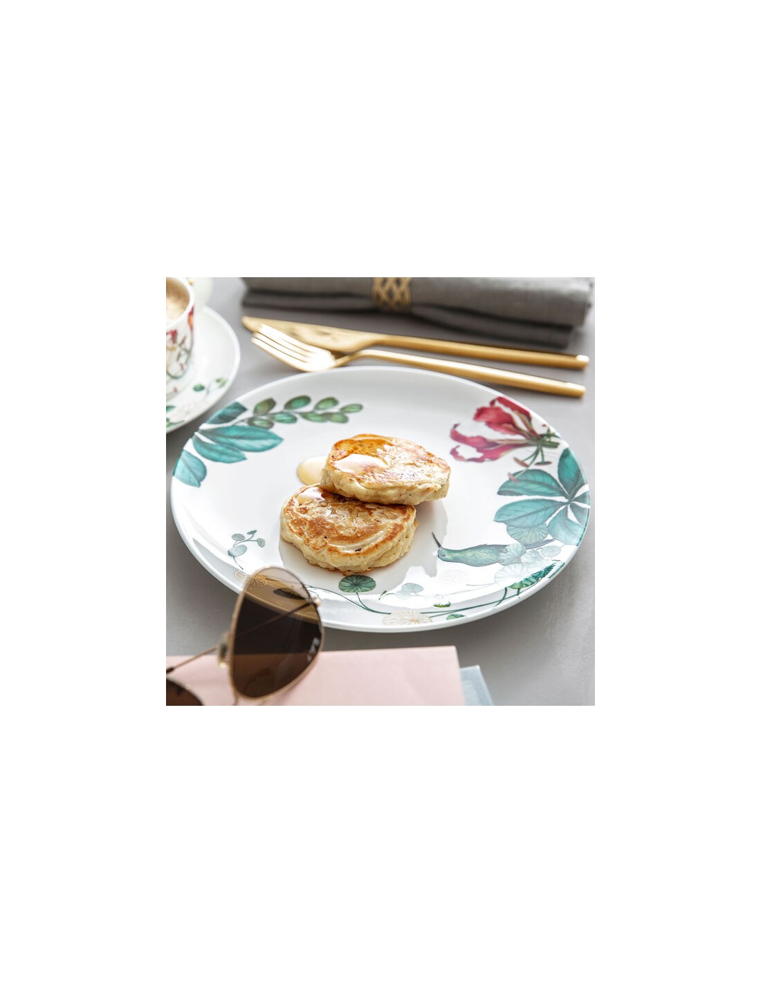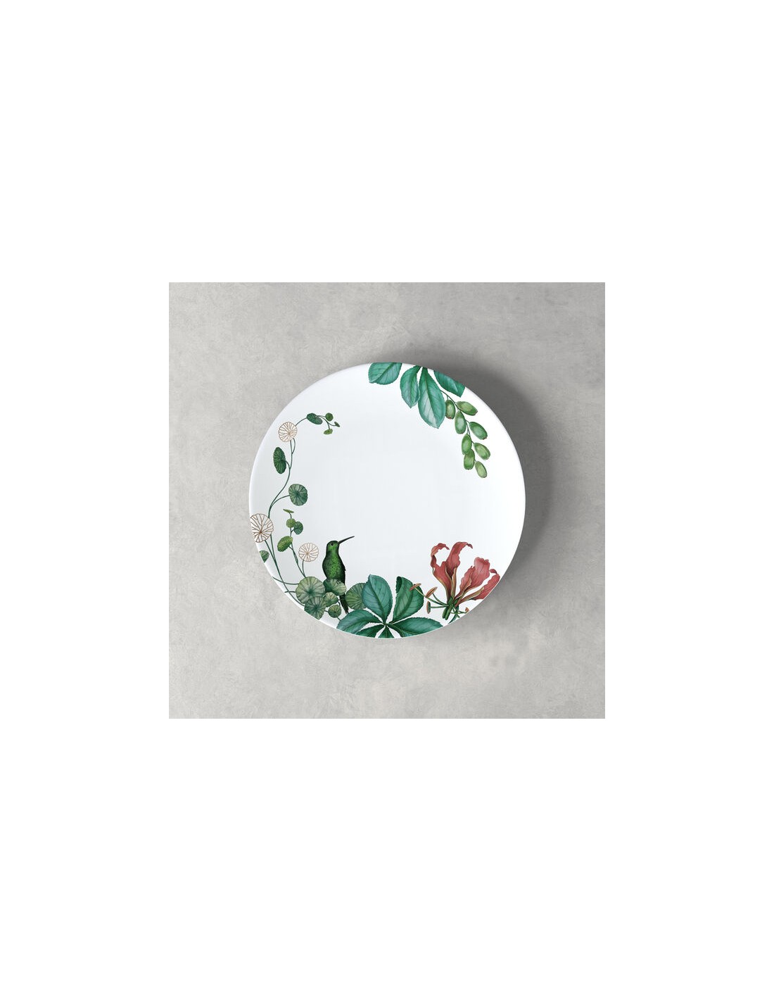 Inspirado en la belleza de Avarua, el diseño Avarua rinde homenaje a los viajes del navegante y explorador James Cook y cuenta la historia de su descubrimiento con un toque artístico. El aspecto tropical se completa con finas líneas doradas que evocan un fantástico efecto tridimensional que da vida a la colección. Con motivos botánicos y colores suaves, el plato de la colección Avarua te permite disfrutar de tus platos favoritos mientras sueñas con un lugar tropical como las Islas Cook. Transpórtate a un mundo de aves del paraíso y plantas exóticas