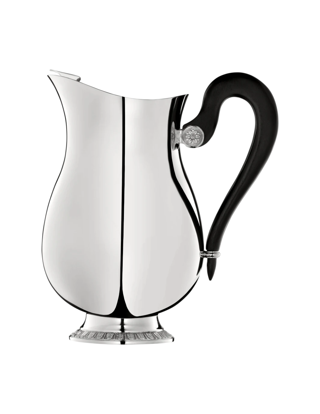 Ponga una mesa refinada y elegante con la jarra de agua Malmaison bañada en plata con asa de madera de ébano. Malmaison, uno de los patrones más históricos de Christofle, tipifica el estilo Imperio, con su friso de delicadas hojas de palmera y loto y su diseño simétrico. El nombre es un guiño al Chateau de la Malmaison, una de las residencias parisinas favoritas de Napoleón Bonaparte y la emperatriz Josefina.