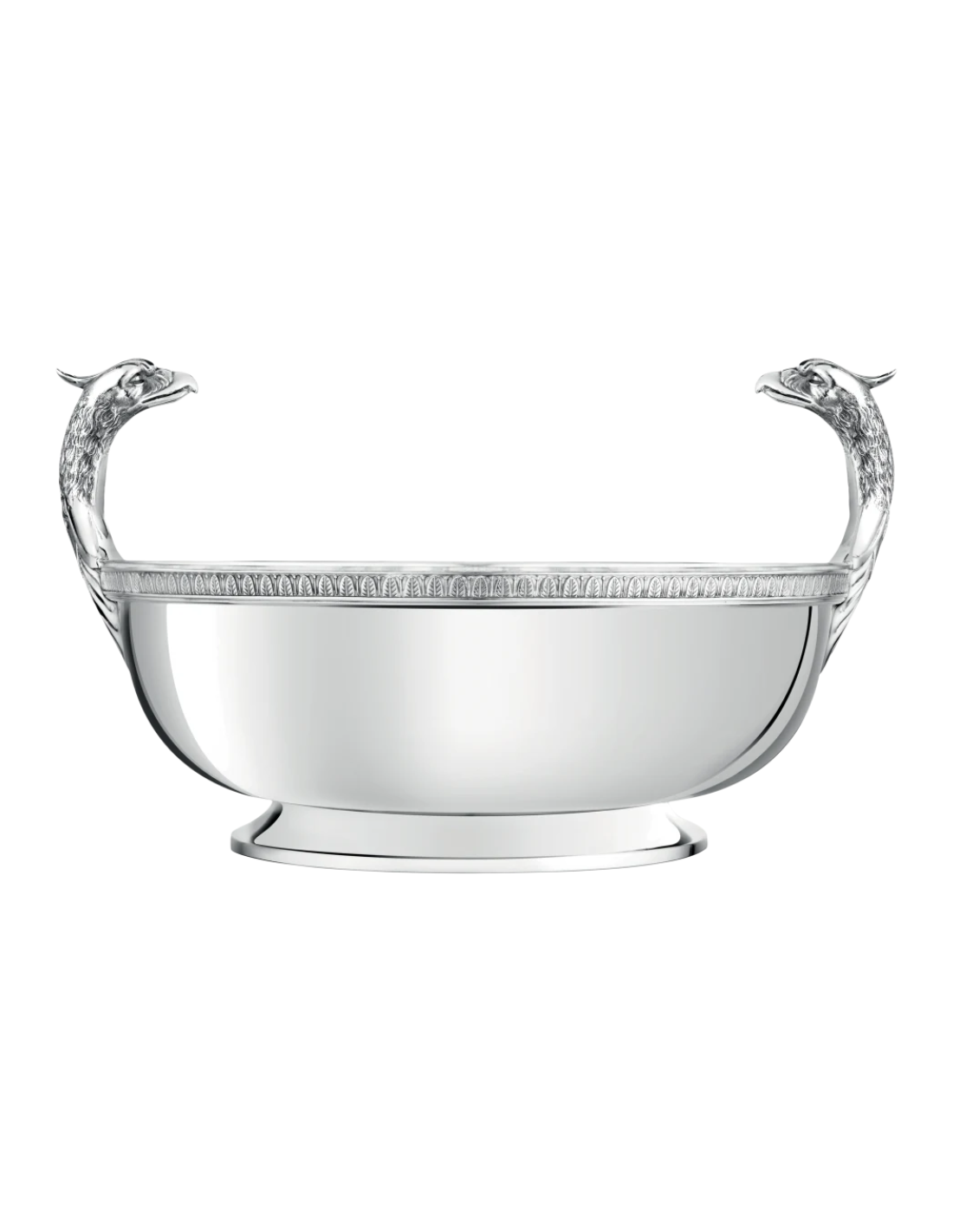 Arma una mesa moderna y a la vez alegremente elegante con la ayuda del centro de mesa plateado Malmaison. Utilízalo solo como elemento decorativo o rellénalo con flores o velas. Malmaison, uno de los motivos con más historia de Christofle, tipifica el estilo Imperio, con su friso de delicadas hojas de palmera y loto y su diseño simétrico. El nombre es un guiño al Chateau de la Malmaison, una de las residencias parisinas favoritas de Napoleón Bonaparte y la emperatriz Josefina.