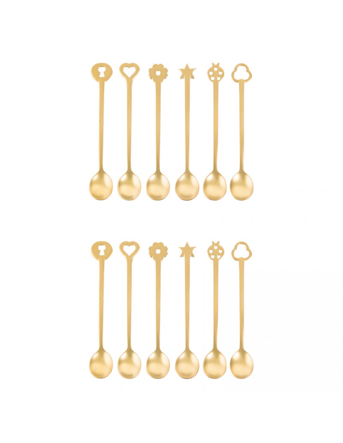 - Juego de cucharas con 12 piezas, cada una con un terminal diferente.