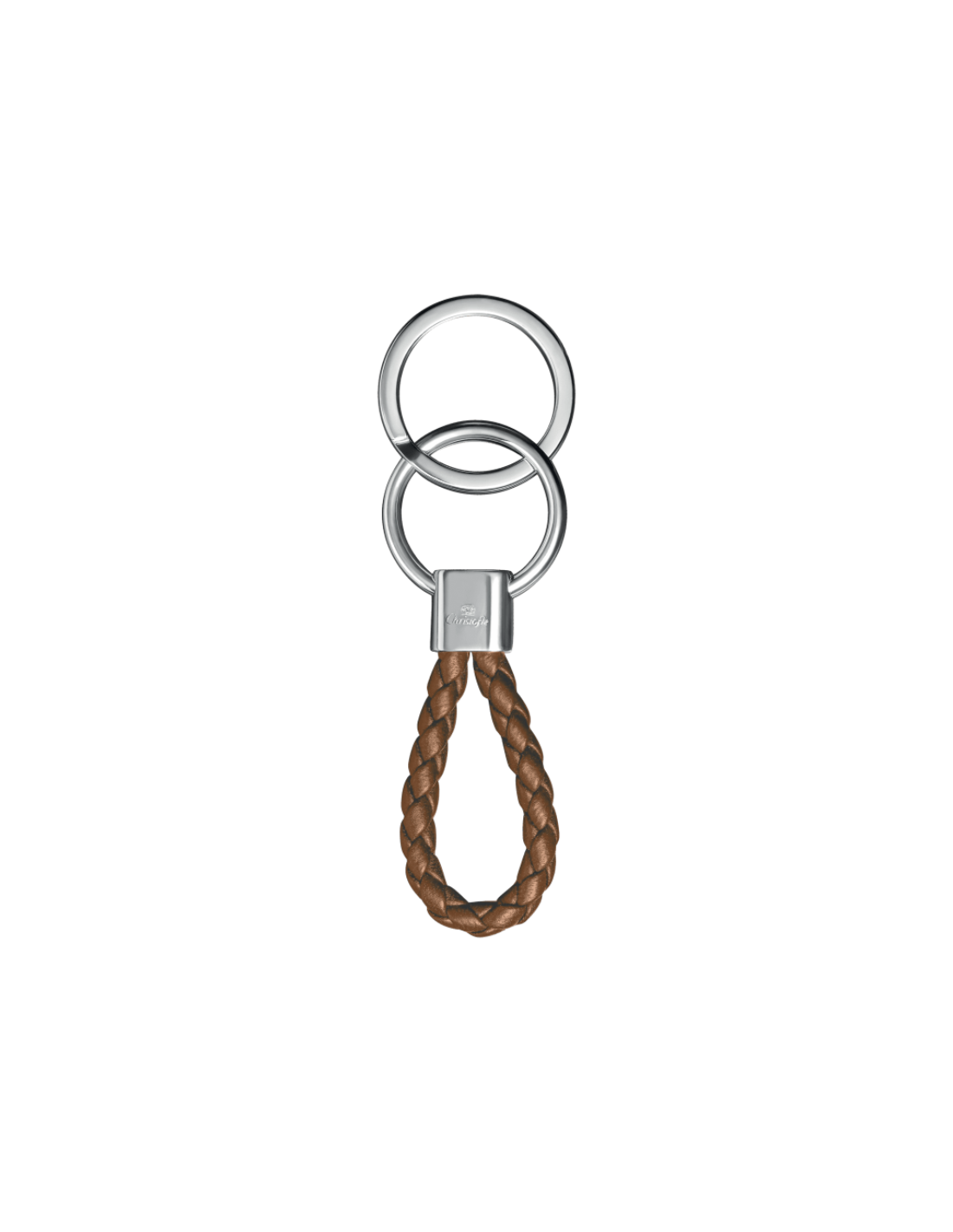 De la colección Duo Complice, este llavero realizado en plata con baño de rodio combinado con piel trenzada es un elegante regalo ideal para cualquier ocasión. El llavero es de acero inoxidable. También disponible en azul o rojo.