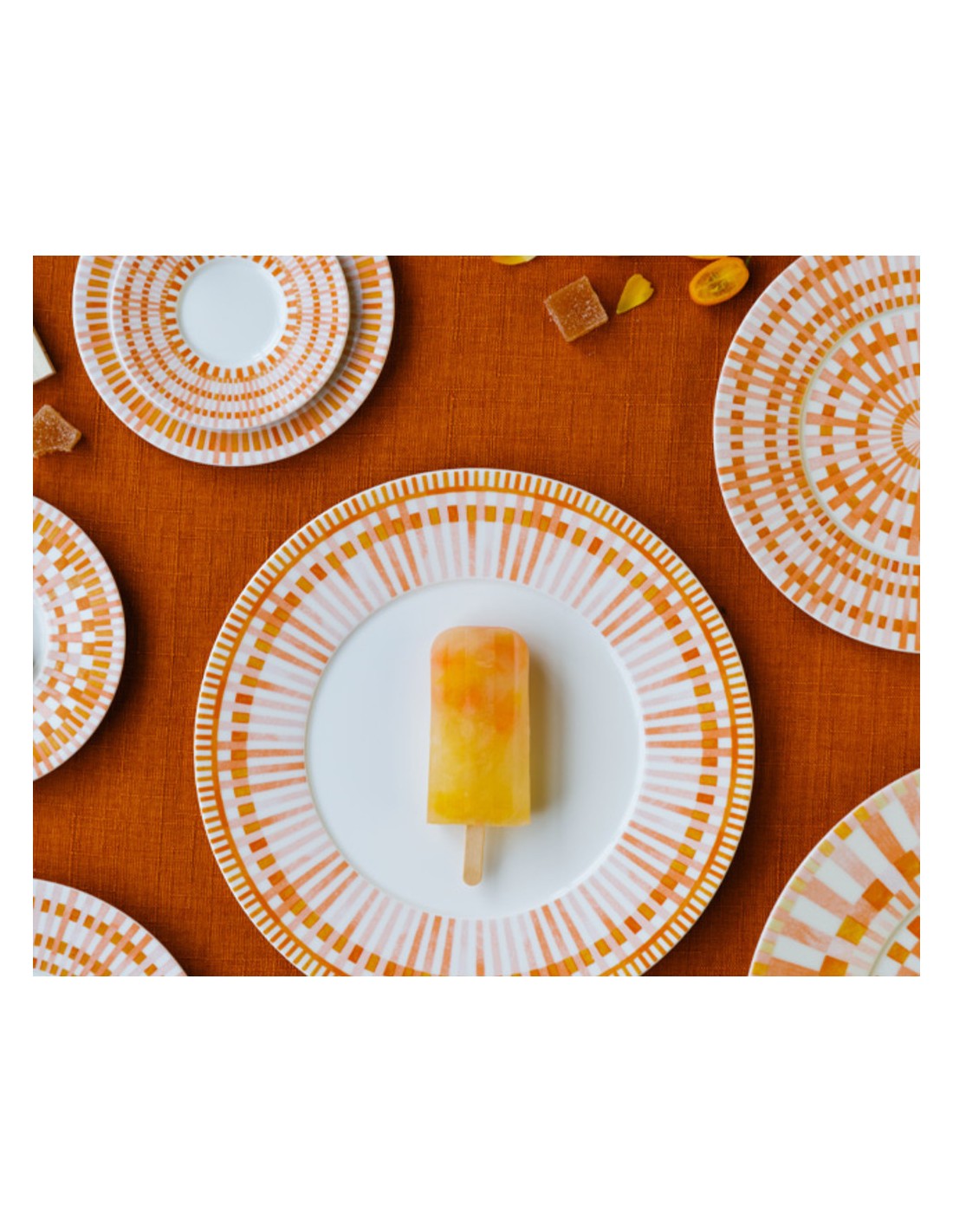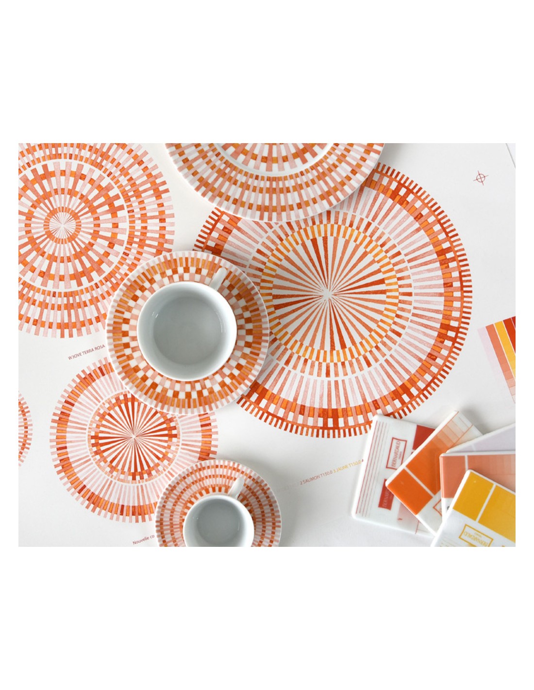 Terra Rosa es una colección alegre y luminosa que te lleva en un viaje desde la Ciudad Rosa hasta los confines de las montañas del Atlas. Con sus tonos rosas y naranjas, el servicio recuerda los tonos pastel de los ladrillos de la Ciudad Rosa y los suelos de terracota de los riads de Marrakech, desteñidos por el tiempo y el sol. Estos colores inspiraron la decoración: bailan y brillan, con diferentes estampados en cada pieza. ¡Juega con variaciones y crea un efecto de ritmo y movimiento para una mesa vibrante y contemporánea!