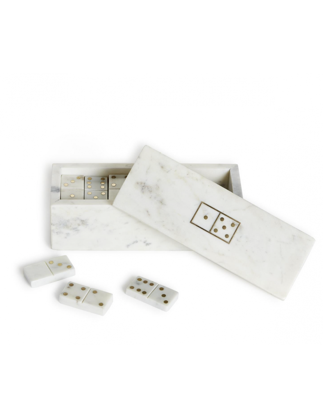 Una hermosa pieza de decoración funcional, este juego de dominó es todo menos ordinario. Las piezas de dominó están pulidas a mano y hechas de mármol genuino al que se le han dado forma de azulejos e incrustaciones a mano para crear una apariencia rica. Colóquelo en una mesa auxiliar, mesa de café o barra para una decoración que también funciona como un juego clásico para emocionar a los invitados. Viene en una caja de mármol a juego que la hace perfecta para regalar.