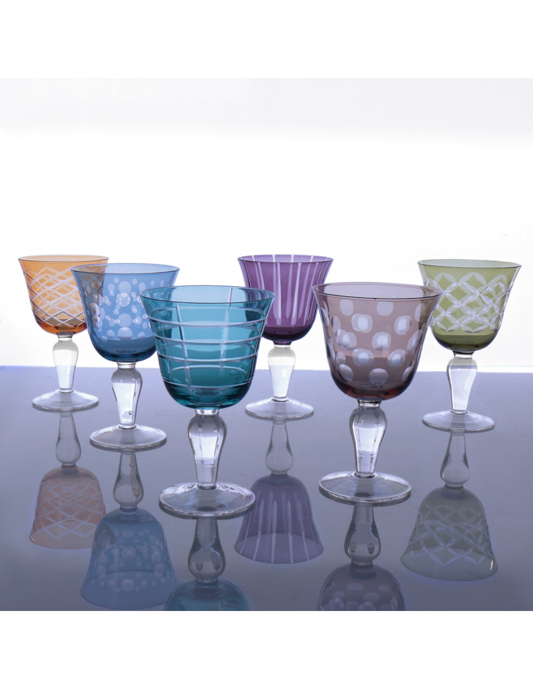 El juego de 6 vinos tallados (multi) de nuestra colección GLASS contiene media docena de obras maestras del arte del vidriero. Cada una de un color diferente y grabada con un diseño diferente, una copa perfecta para su vino, cóctel u otras bebidas favoritas. Muéstrelo con el juego de 6 unidades de VIDRIO tallado doble antiguo (Multi) para aumentar las opciones de servicio.