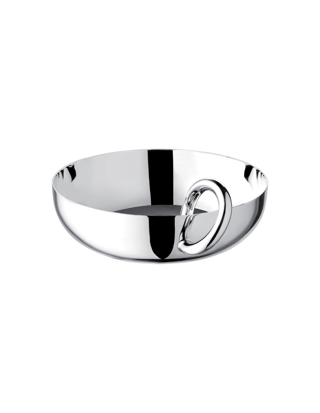 El cuenco Vertigo mediano plateado con asa única es perfecto para servir refrigerios como nueces, aceitunas o dulces, o puede usarse como un cajón de baratijas. El atrevido motivo de Vertigo (un anillo grueso, sutilmente asimétrico y que a menudo se coloca juguetonamente torcido) se puede encontrar en cada pieza de la colección diseñada por Andrée Putman. Diámetro : 14 cm