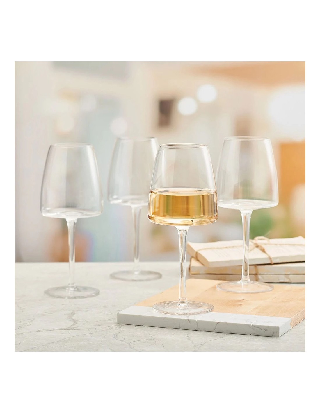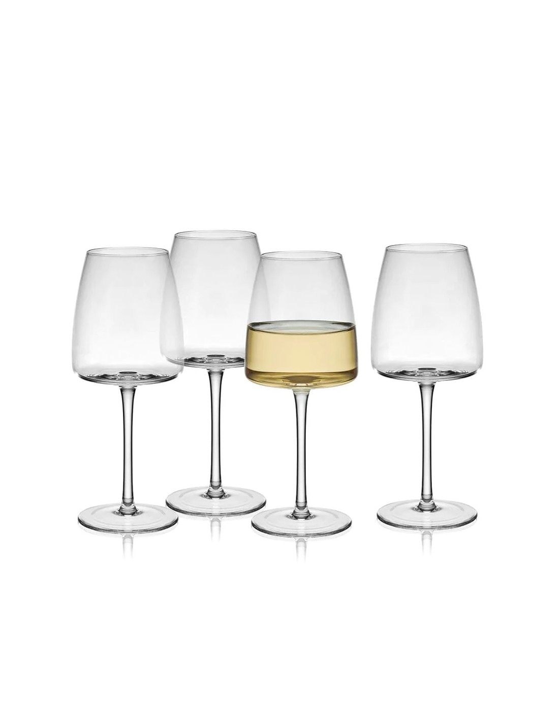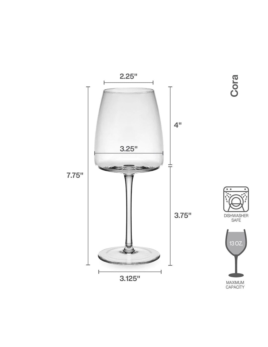 Este juego de copas de vino blanco Cora presenta curvas inesperadas que se extienden hacia bases anchas, con tapas cónicas diseñadas para capturar el aroma del vino y las bebidas espirituosas para realzar su experiencia.