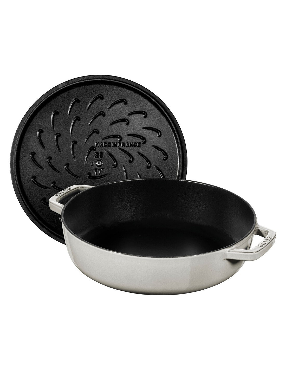 Sartén de hierro fundido de 28 cm con efecto lluvia y 3,7 litros de capacidad. La estructura de gota Chistera de la tapa asegura que el vapor se recoja en las estructuras de goteo, para distribuirse uniformemente como precipitación sobre toda la comida. El resultado es que la comida no se seca, sino que permanece siempre sabrosa, jugosa y tierna. Un esmalte negro duradero que es perfecto para dorar, estofar y asar a largo plazo. La sartén es adecuada para todo tipo de cocinas, así como para hornos.
