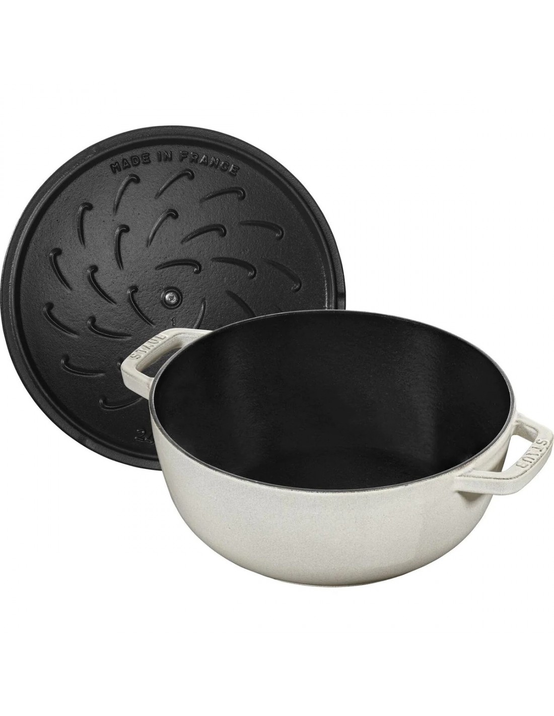 El horno francés presenta las mismas excelentes características de cocción que la Cocotte. El hierro fundido esmaltado distribuye el calor uniformemente para obtener mejores resultados y mantiene la temperatura durante mucho tiempo, para que la comida se mantenga caliente durante toda la comida.