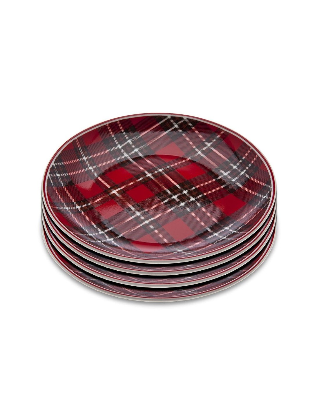 Juego Godinger de 4 platos a cuadros de 6" en rojo.