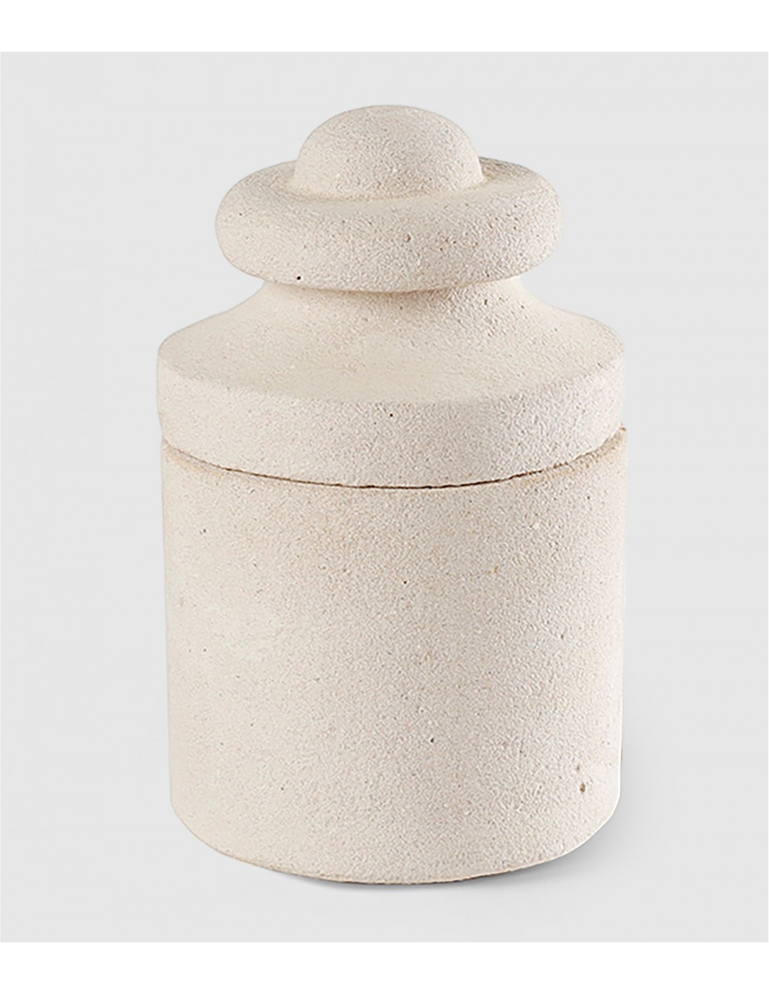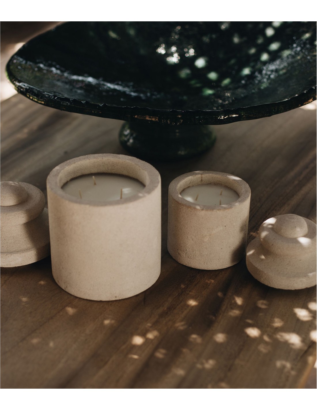 Vela de piedra cubierta con tapa tallada. Aroma a cactus.