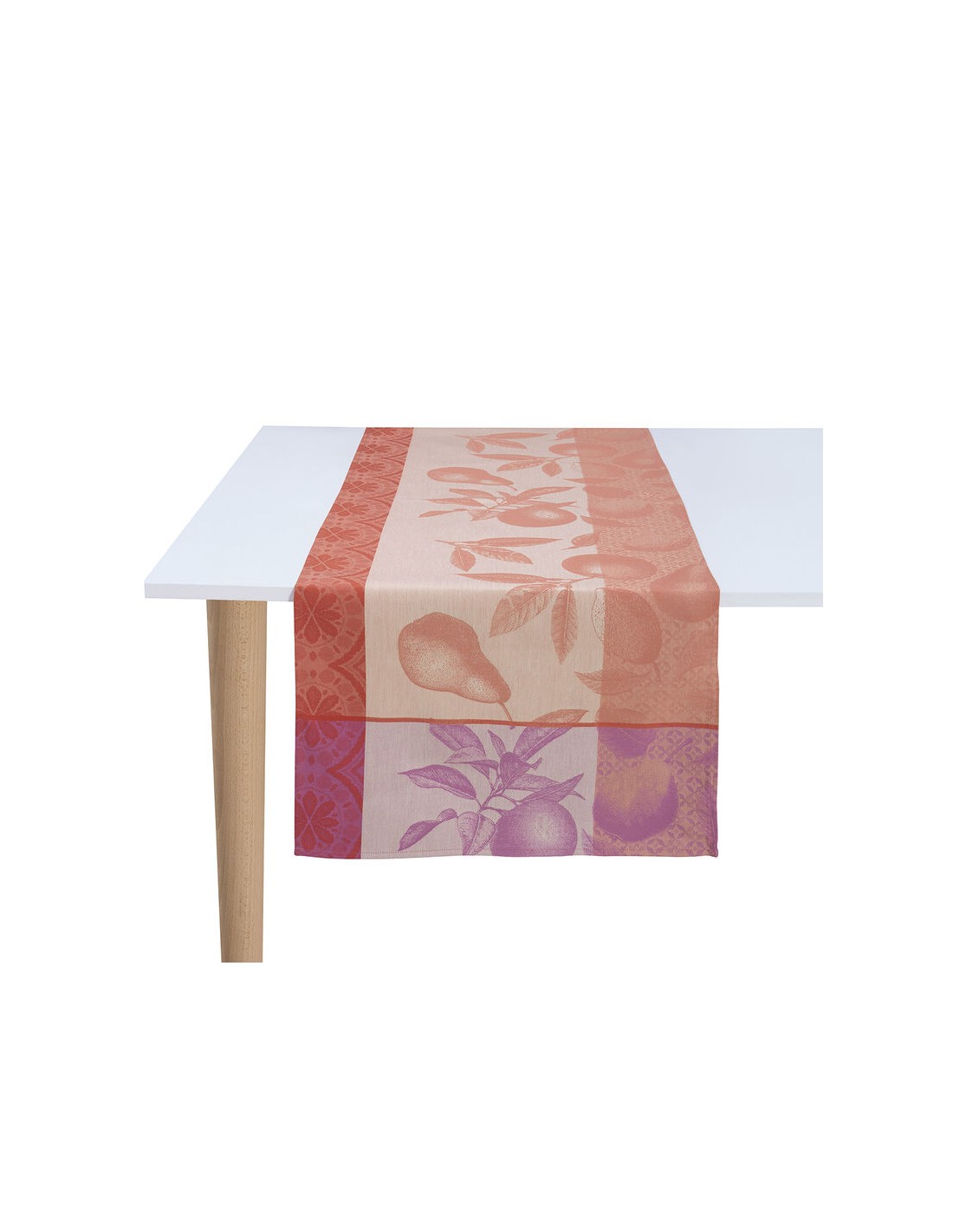 Un tejido delicado donde se entrelazan frutas y motivos ornamentales provenzales. Familiar, gourmet y colorida, la mesa recuerda preciosos recuerdos de vacaciones: mercados soleados y aromas afrutados.