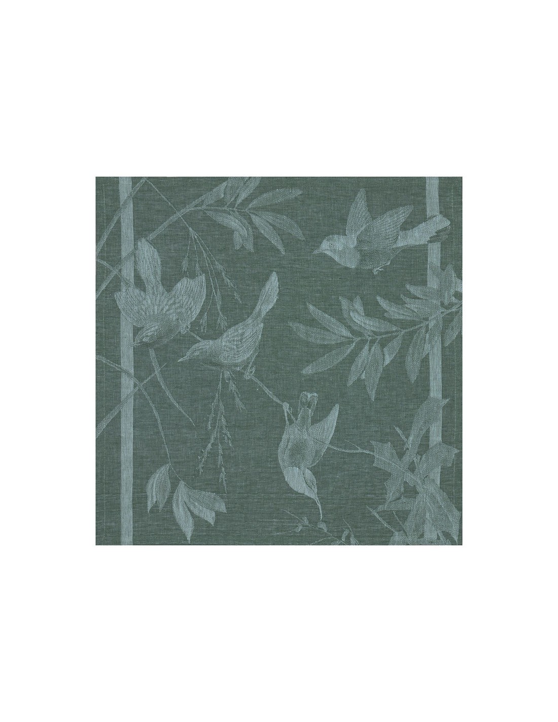 Una servilleta única y decorativa en la que la apacible complicidad entre la vegetación y las aves crea una atmósfera suave y elegante. Una colaboración QUINSAI x LE JACQUARD FRANÇAIS: un puente entre el diseño de interiores y el arte de la mesa.