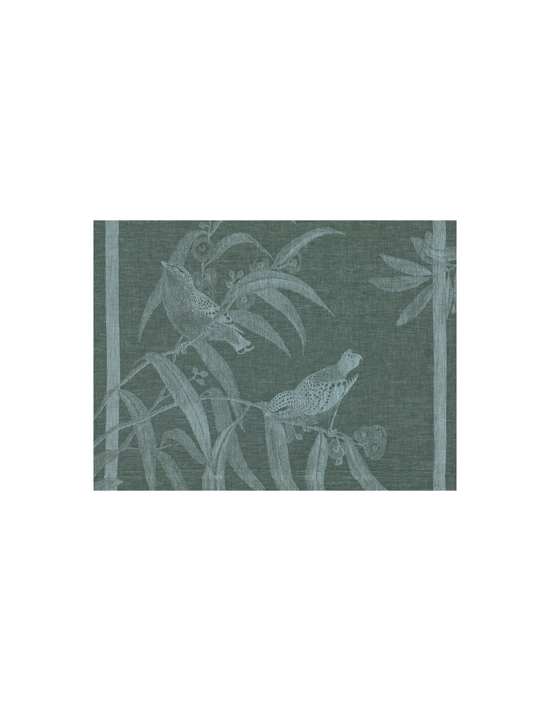 Un mantel individual único y decorativo donde la complicidad pacífica y armoniosa entre la vegetación y las aves crea un ambiente suave y elegante. Una colaboración de QUINSAI x LE JACQUARD FRANÇAIS: un puente entre el diseño de interiores y el arte de mesa.