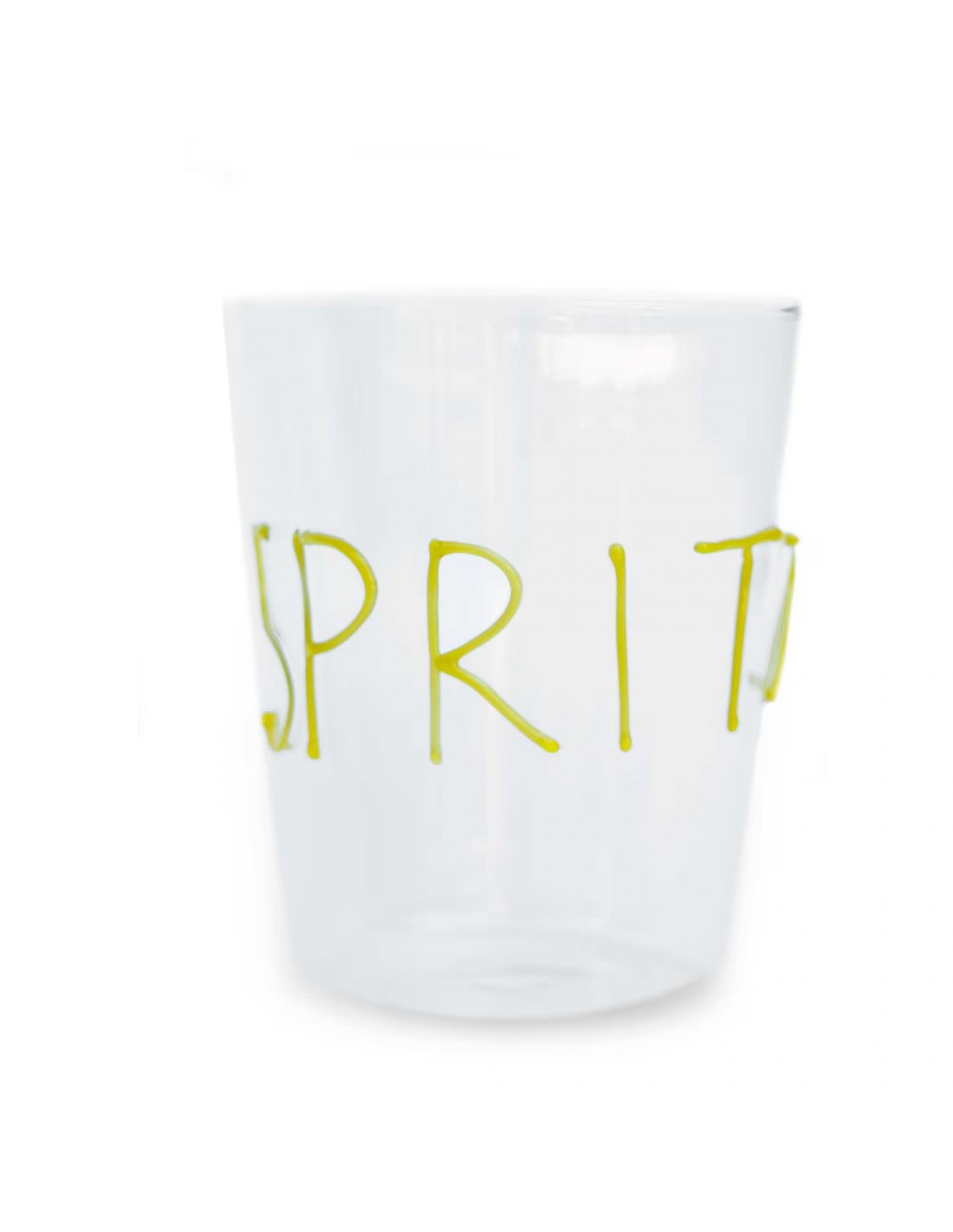 Copa de la Selección Gioiapura de la marca de cócteles en vidrio de borosilicato con escritura spritz de vidrio de colores hecha a mano. capacidad 450 ml.