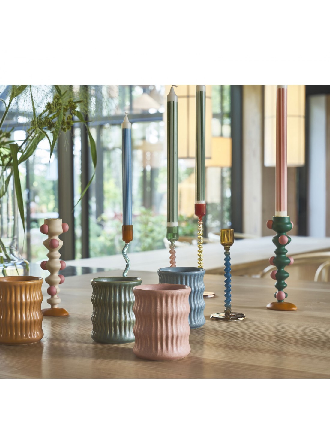 El colorido candelabro de vidrio de Villa Styles está elaborado a mano por expertos artesanos del vidrio, lo que le da a cada ejemplar su propio carácter individual. El candelabro tiene una base, un tallo en espiral y un soporte en el que cabe una vela de 2,2 cm de diámetro. El candelabro es una hermosa decoración cuando está solo. Sin embargo, también puedes combinar varios candelabros de vidrio de diferentes alturas y colores de Villa Styles para crear una colorida naturaleza muerta en la mesa del comedor.