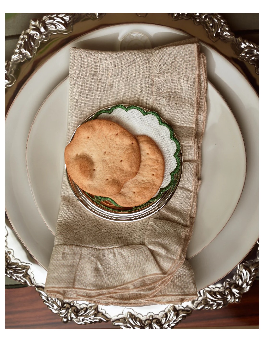 Estos posavasos de lino combinan practicidad con estilo. Fabricados en Portugal, su borde dentado añade elegancia a cualquier mesa. Un gran complemento para oficinas, salones o dormitorios. ¡Práctico y elegante!