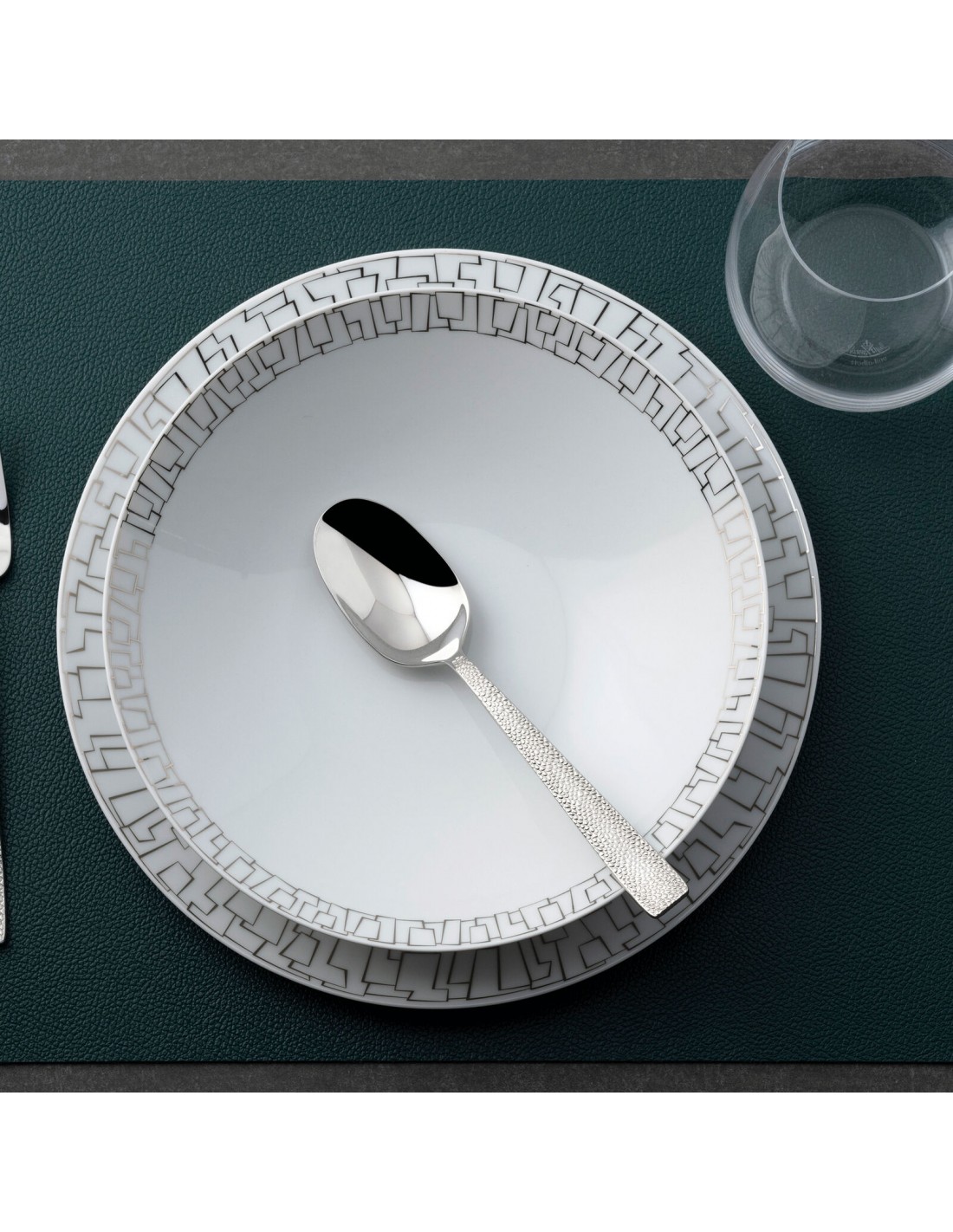 Texturas de moda inspiradas en lugares de vacaciones de ensueño y destinos de la jet-set internacional. Siena destaca por un relieve de moda en todo el cuerpo de la cubertería, para una puesta en escena extremadamente refinada. Este set contiene: 6 cucharas de mesa, 6 tenedores de mesa, 6 cuchillos de mesa, 6 tenedores de postre y 6 cucharas de té.