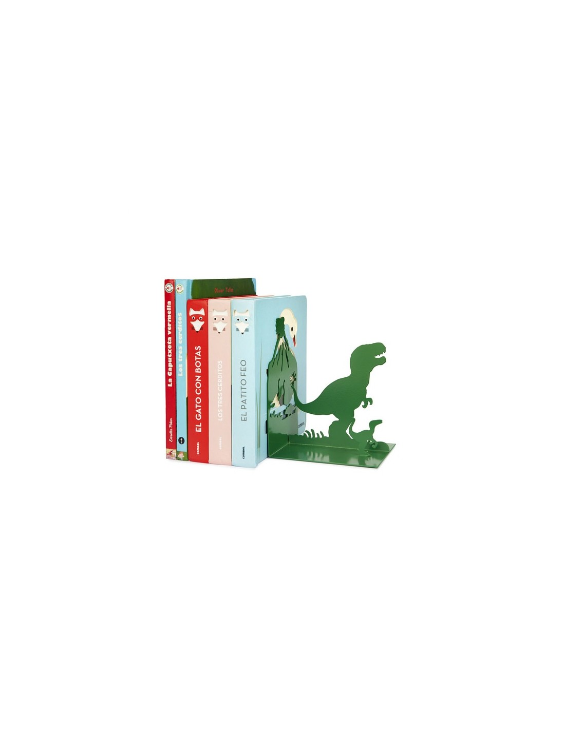 Ideal para proteger los libros de caídas y organizarlos en la estantería de la habitación infantil. Su diseño inspirado en un Tiranosaurio Rex dará un toque aventurero a la decoración.