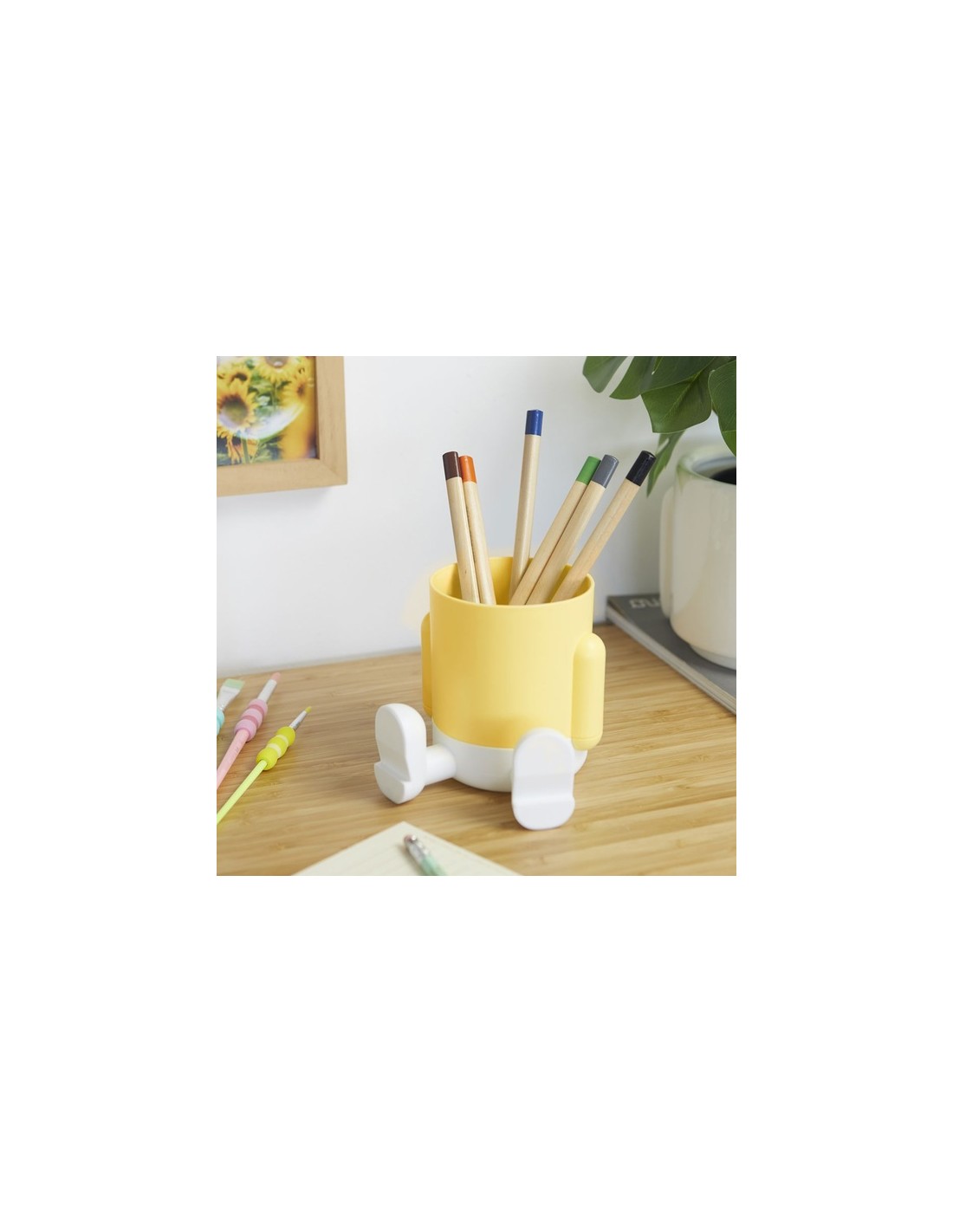 Simula una pequeña persona sentada. Sin duda, ¡un diseño colorido y diferente que no dejará indiferente a nadie! 2 Compartimiento: el superior para lápices, y el inferior para guardar objetos más pequeños, como borras, clips...