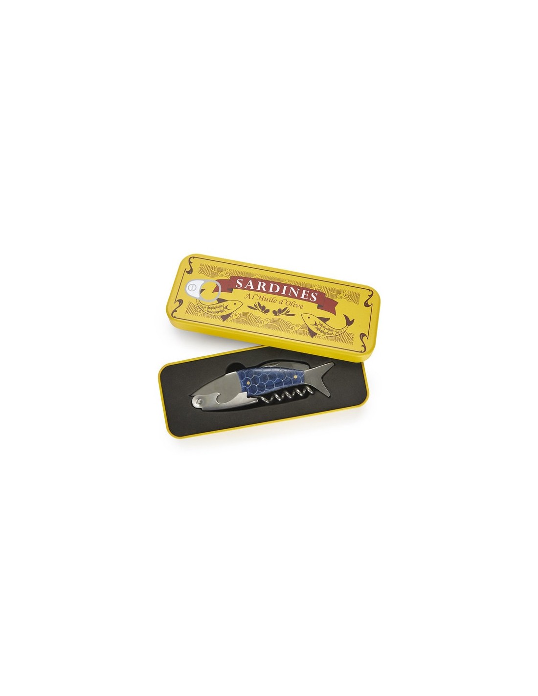 Lo puedes tener a la vista, su diseño original en forma de sardina le dará un toque divertido a tu mesa, puedes utilizarlo como sacacorchos, abrebotellas o herramienta multiusos todo en uno. Incluye caja metálica de diseño retro para guardarlo.