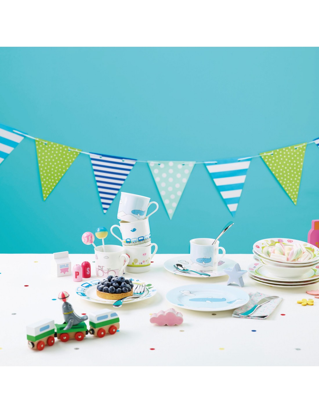 ¡La hora de la cena nunca ha sido tan divertida! Una colección de juegos infantiles, caracterizada por el buen gusto y la atención al diseño, al más puro estilo Sambonet. Dedicada a una mise en place perfecta para mamá y papá, desde la trona hasta la mesa. Este set incluye: Plato, plato hondo, taza con mango, cuchara de mesa, tenedor de mesa, cuchillo de mesa y cuchara de té/café.