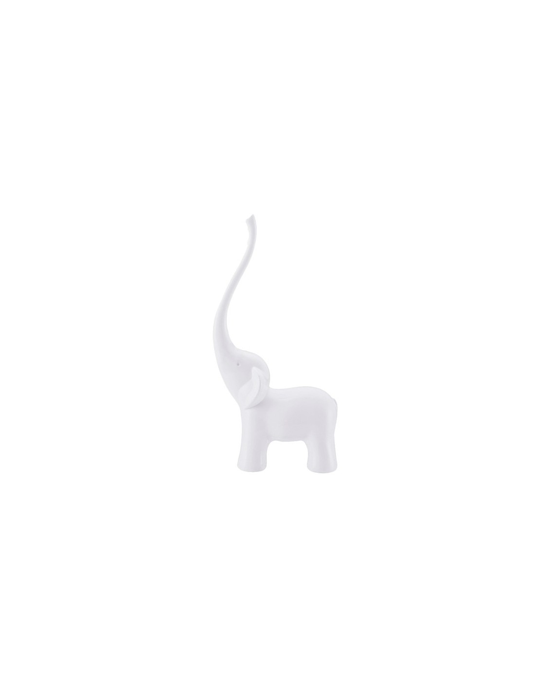 Su tamaño lo hace ideal para ubicarlo allí donde dejes los anillos cuando estás en casa; mesita de noche, recibidor, baño,... y te permite tenerlos visibles. Gran capacidad para dejar varios anillos gracias a su larga trompa. El acabado en color blanco, las lineas suaves y su trompa estilizada hace que decore allí donde lo quieras poner.