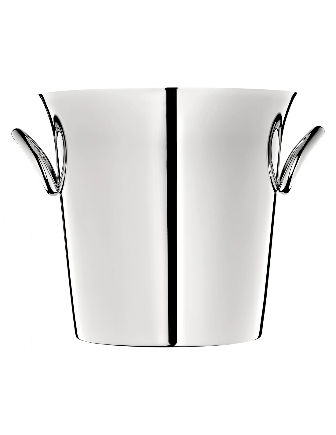 El moderno cubo enfriador de champán Vertigo plateado para dos botellas es un gran regalo para los amantes de las burbujas y aquellos a quienes les gusta entretener. También se puede utilizar para enfriar vino blanco. El atrevido motivo de Vertigo (un anillo grueso, sutilmente asimétrico y que a menudo se coloca juguetonamente torcido) se puede encontrar en cada pieza de la colección diseñada por Andrée Putman.