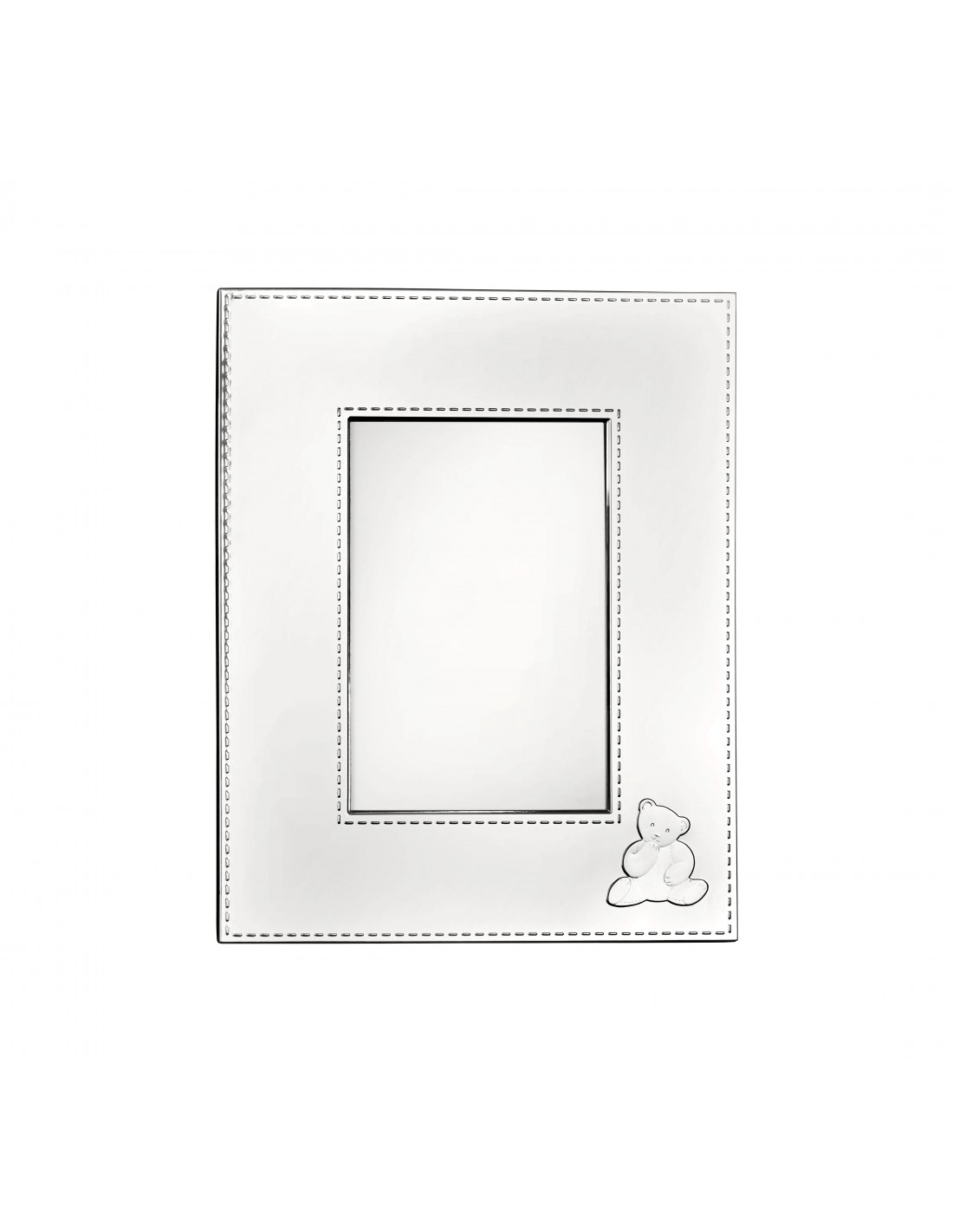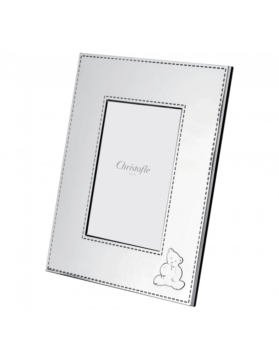 Muestra los momentos más preciados de la vida en este marco de Charlie Bear. La montura plateada tiene grabado un motivo de osito de peluche. La parte posterior del marco es de madera y se puede personalizar con un nombre y/o una fecha grabada colocada sobre una placa plateada (6 cm x 2 cm) para fijar a la parte posterior del marco.