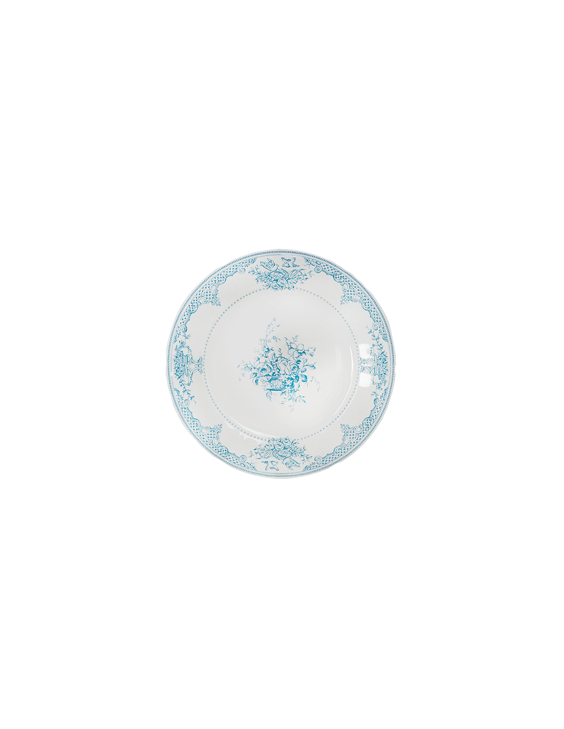 Caja de 4 platos llanos Fleurs extra de la colección Les Dépareillées Bleu. Estos platos elegantes y atemporales proceden de los archivos del siglo XIX y son un auténtico icono de Gien.