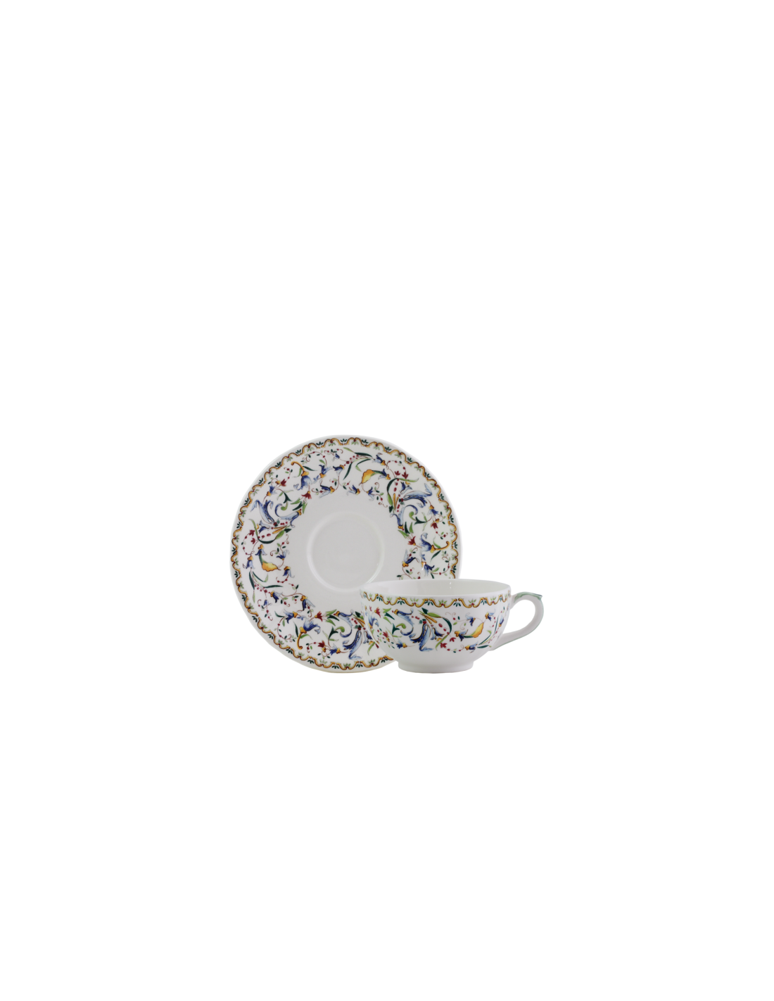 El servicio Toscana forma parte de la colección desde 1996. Proviene directamente de nuestros archivos y está inspirado en los modelos creados en 1875. Toscana aporta el acento de la primavera con sus volutas de flores y sus colores suaves.