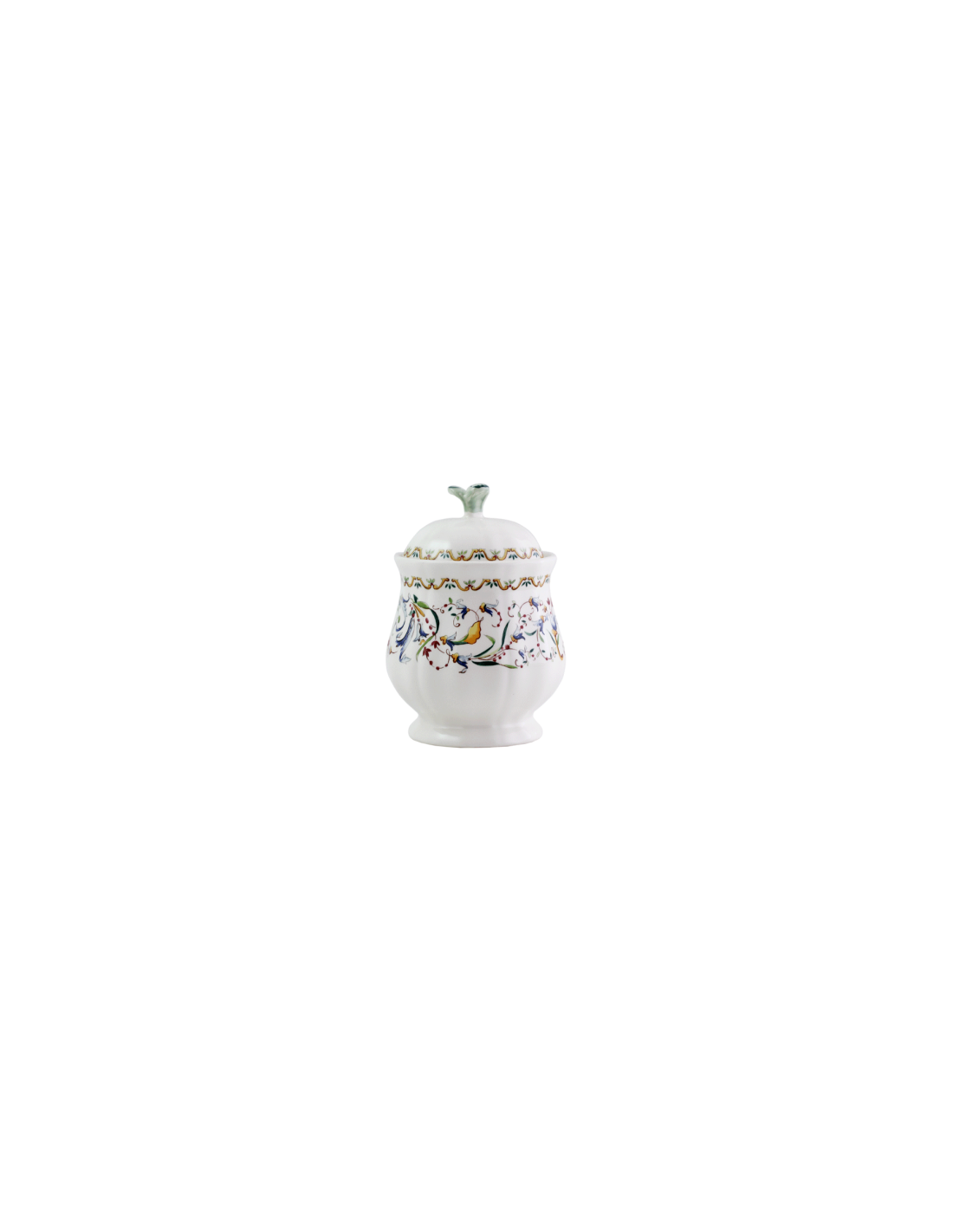 Una pequeña pieza práctica que extrae su encanto de las influencias italianas quedará perfecta a la hora del té o del café. Con una forma tradicional, este azucarero tiene formas bastante redondas y generosas. El botón de la tapa está pintado a mano. Combínalo con tazas de té o café de la misma colección.