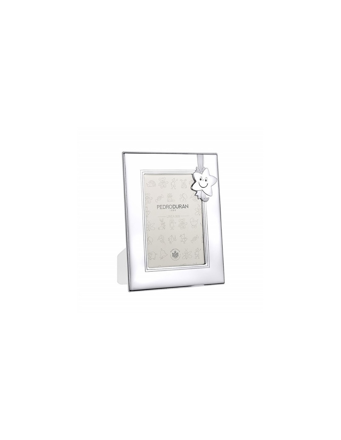 Marco De Fotos Infantil Pedro Duran Estrella 07500532. Medida de la foto 13 x 18 cm, medida exterior 20 x 25 cm. Precioso marco para bebe color plata con detalle de estrella, trasera de madera y lacado para conservar su brillo con tratamiento protector antioxidante.