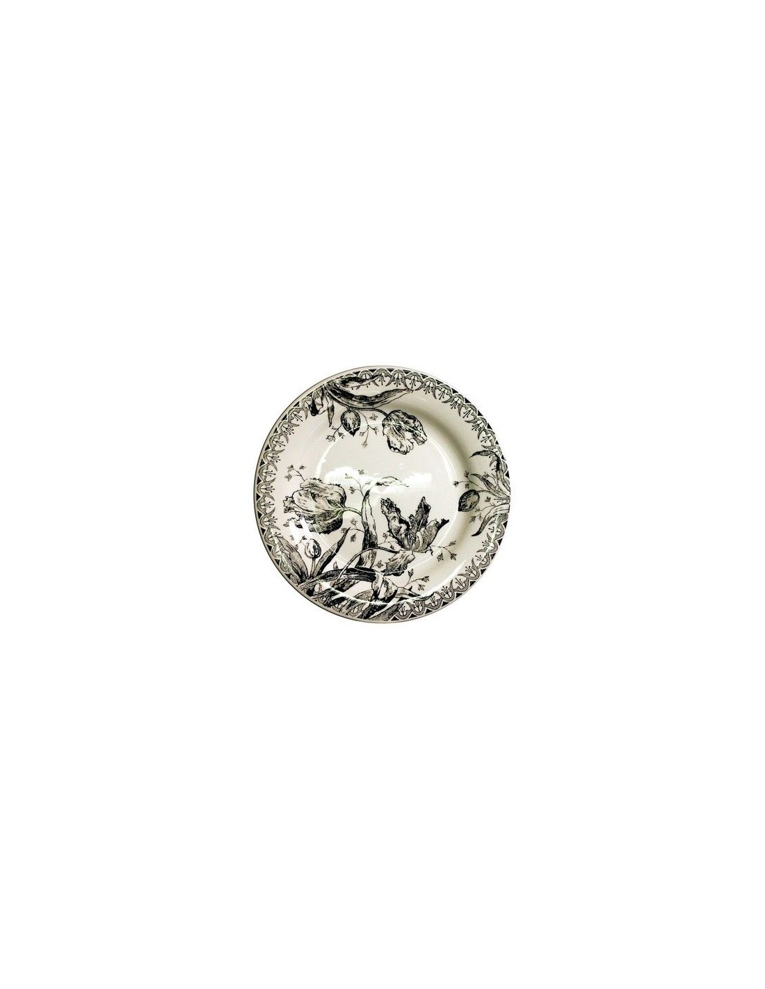Realza tus momentos dulces con nuestra caja de 4 platos de postre de loza, decorados con los emblemáticos tulipanes negros. La elegancia se invita a cada degustación.