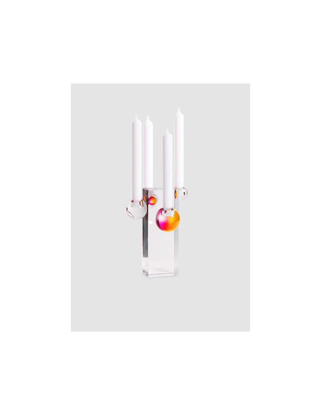 Se aplican 4 bolas de cristal a un bloque de cristal monolítico sólido, utilizando una unión pigmentada especial que revela un efecto de teñido anudado único.