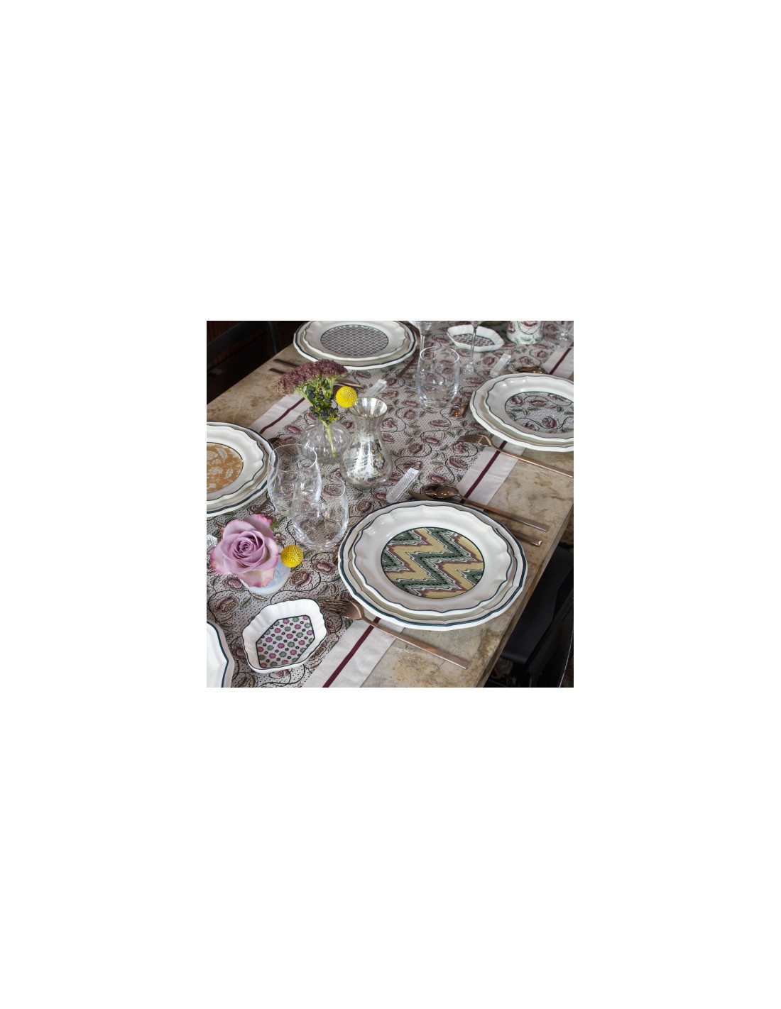 Estos platos de postre de loza con inspiraciones florales y geométricas resaltarán tu mesa. Recibirán tanto tus platos dulces como salados. También están disponibles en platos hondos o planos. Su presentación en una elegante caja regalo quedará genial a la hora de regalarlo. Red pintada a mano.