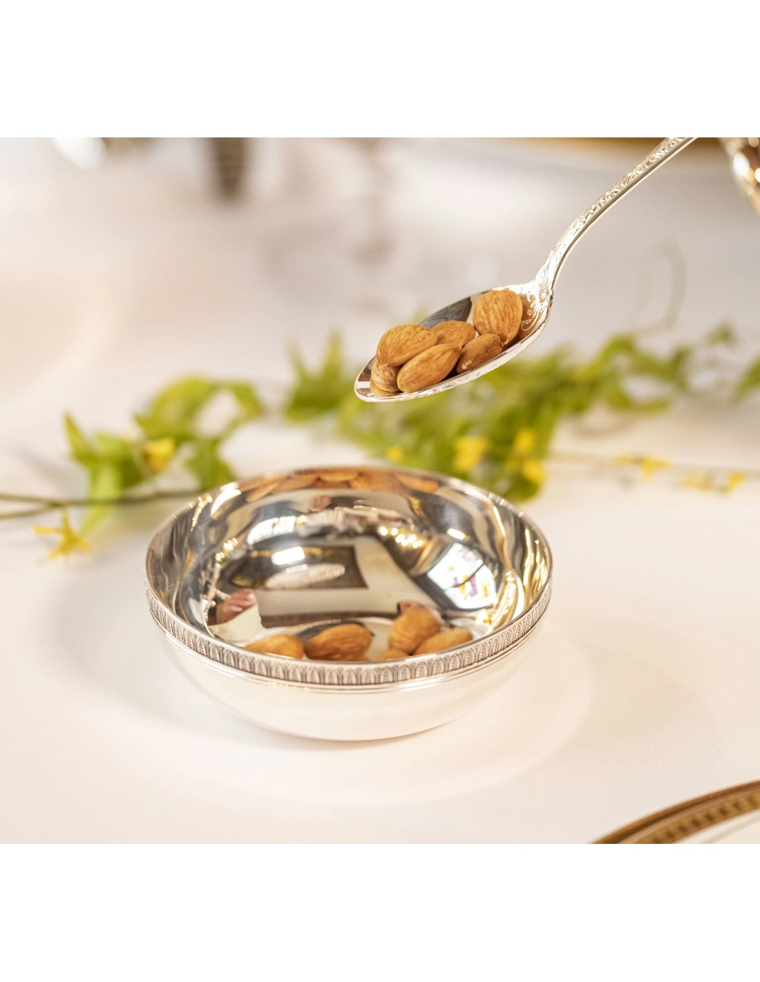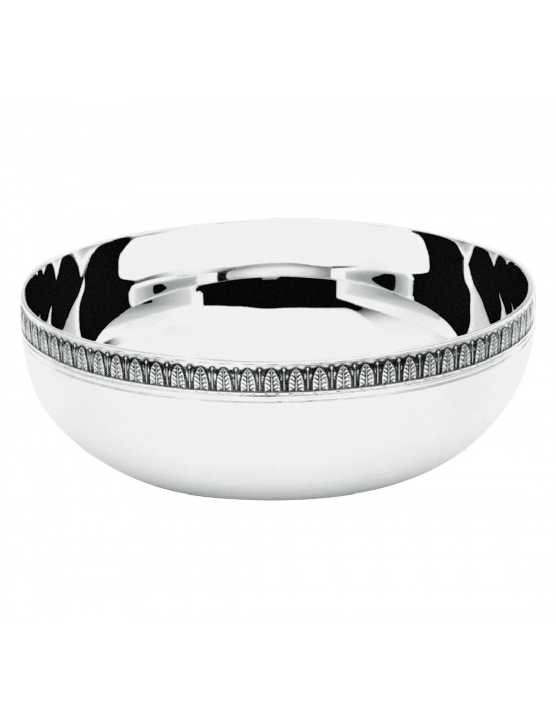 Prepare una mesa elegante con el pequeño cuenco redondo bañado en plata con el diseño Malmaison. Uno de los diseños más históricos de Christofle, Malmaison es un ejemplo del estilo Imperio, con su friso de delicadas hojas de palma y loto y su diseño simétrico. El nombre es un guiño al Château de la Malmaison, la residencia parisina favorita de Napoleón Bonaparte y la emperatriz Josefina.