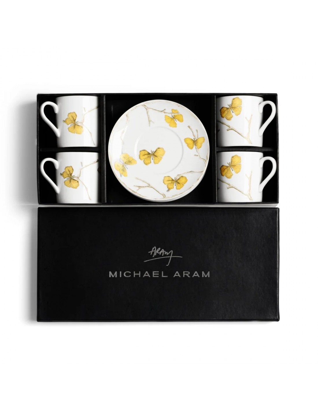 La colección Butterfly Ginkgo celebra la representación de la flora como fauna. La fascinación de Michael por un tipo particular de árbol de ginkgo, el ginkgo Biloba, o "gingko mariposa", que crece con una hoja doble que recuerda a las alas de una mariposa, dio lugar a una imagen fantástica de la planta. Realizadas al más alto nivel de artesanía, cada pieza está hecha de latón macizo con vasijas grabadas en forma de capullo. Las piezas de la colección son una proeza de la artesanía india y capturan el espíritu poético que es tan profundamente indicativo del trabajo de Michael.