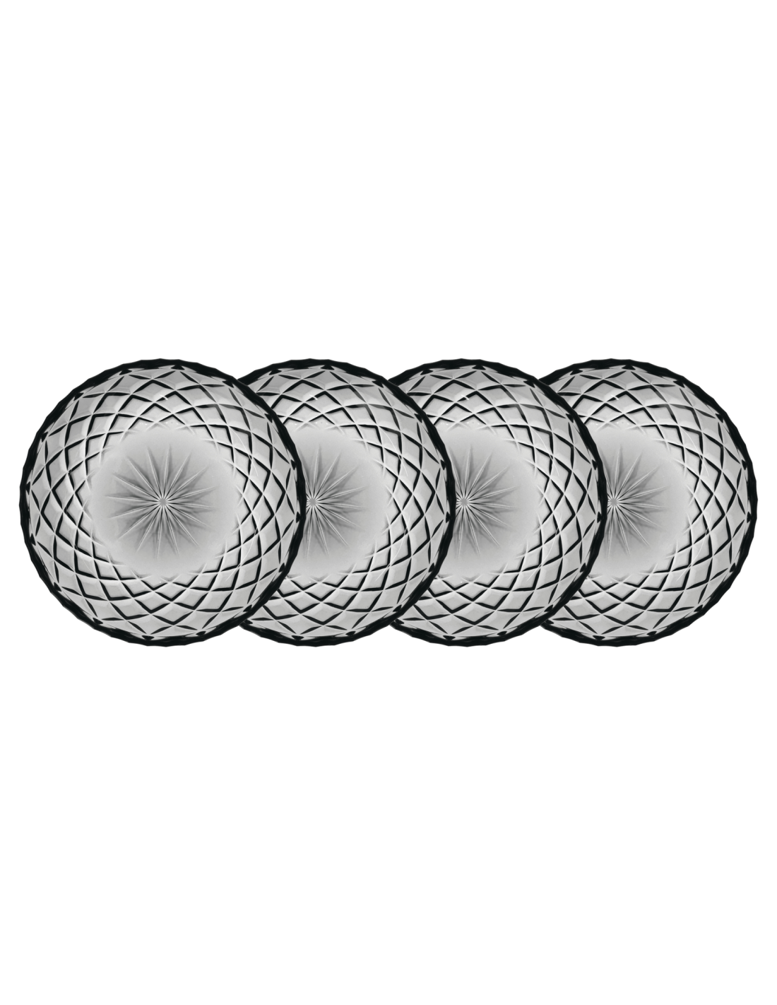 4 platos, diámetro. 16 cm, en cristal tintado. El hermoso diseño con bellas facetas significa que la luz juega tanto en el vaso como en el contenido y mejora la experiencia sensual, independientemente de si estás disfrutando de un delicioso almuerzo o de un delicioso postre.