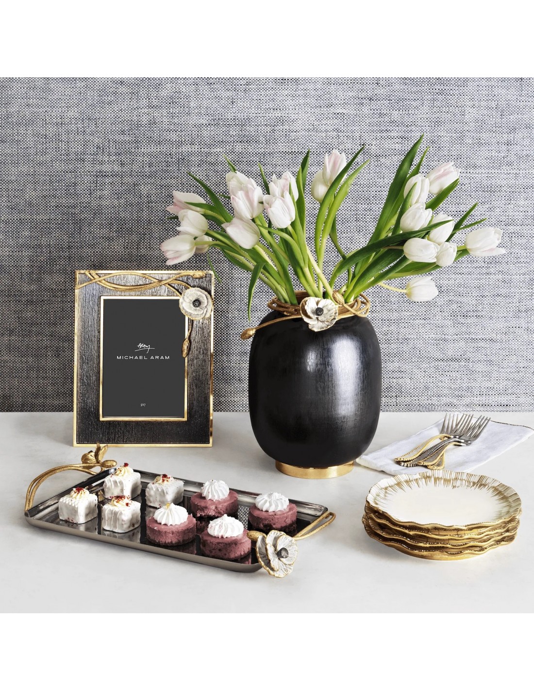 Esta colección está inspirada en las flores de anémona, que en algunas culturas se dice que traen buena suerte y ofrecen protección. Las flores están asociadas con la pureza y la paz.