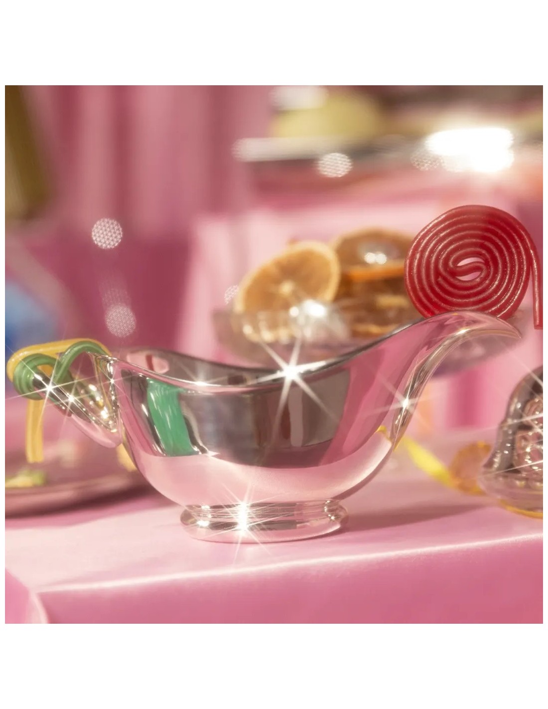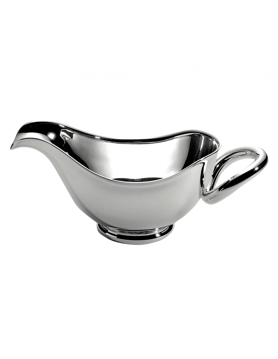 La salsera Vertigo de tamaño mediano bañada en plata añade refinamiento y una moderna elegancia lúdica a cualquier comida. Es ideal para servir salsas de todo tipo. El atrevido motivo de Vertigo (un anillo grueso, sutilmente asimétrico, que a menudo se coloca de forma torcida) se puede encontrar en todas las piezas de la colección diseñada por Andrée Putman.