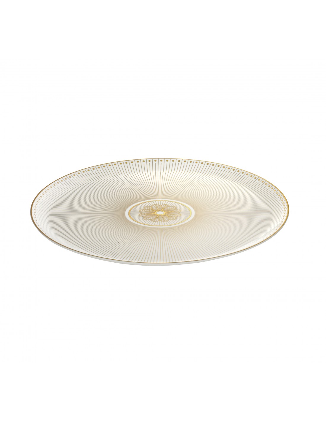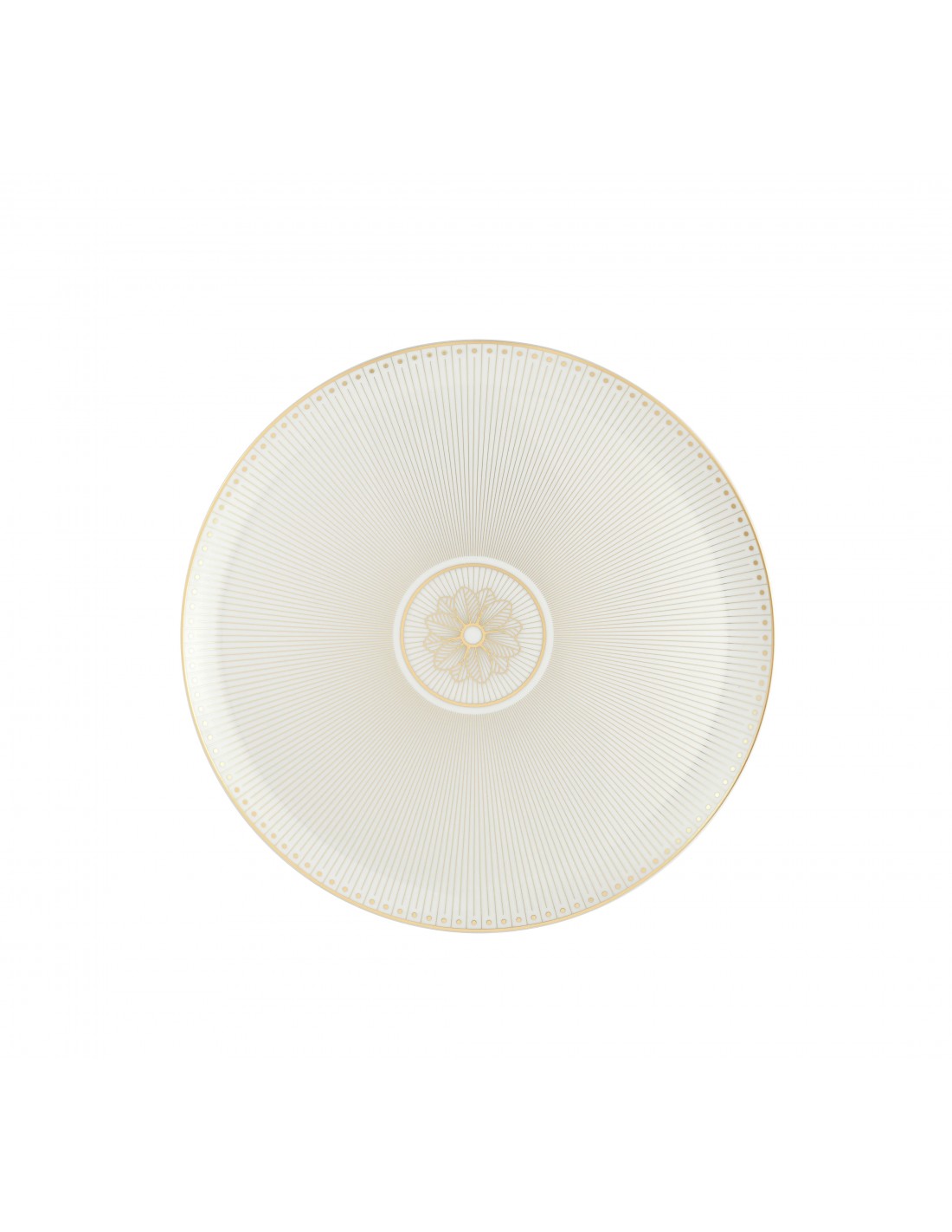 Fuente para tarta en porcelana de Limoges con decoración dorada para una elegante decoración de mesa. La decoración reinterpreta los códigos característicos de la colección.