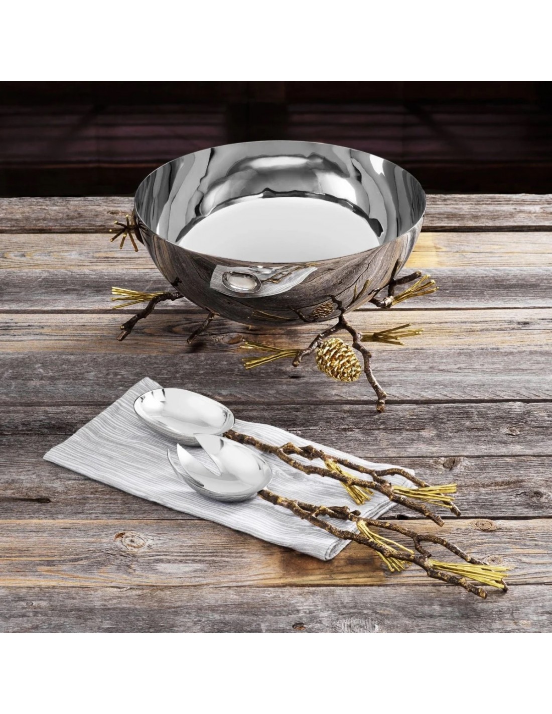 La colección Pine Cone, con sus pátinas de oro antiguo y bronce oscurecido, celebra el brillo y la calidez de la temporada navideña. Inspirado por una piña caída que tiene sobre su escritorio, Aram siempre se ha sentido intrigado por las piñas y su antiguo simbolismo. Los griegos y los romanos, así como otras culturas a lo largo de la historia, han incorporado piñas en su arte, creencias religiosas y mitología con temas comunes de regeneración, sabiduría y renovación.