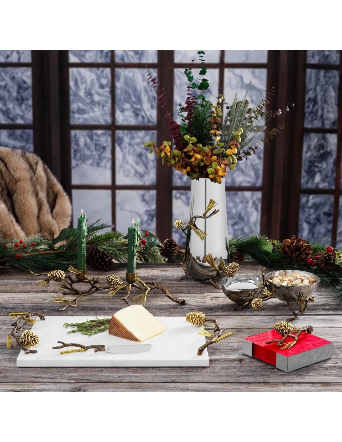 La colección Pine Cone, con sus pátinas de oro antiguo y bronce oscurecido, celebra el brillo y la calidez de la temporada navideña. Inspirado por una piña caída que tiene sobre su escritorio, Aram siempre se ha sentido intrigado por las piñas y su antiguo simbolismo. Los griegos y los romanos, así como otras culturas a lo largo de la historia, han incorporado piñas en su arte, creencias religiosas y mitología con temas comunes de regeneración, sabiduría y renovación.