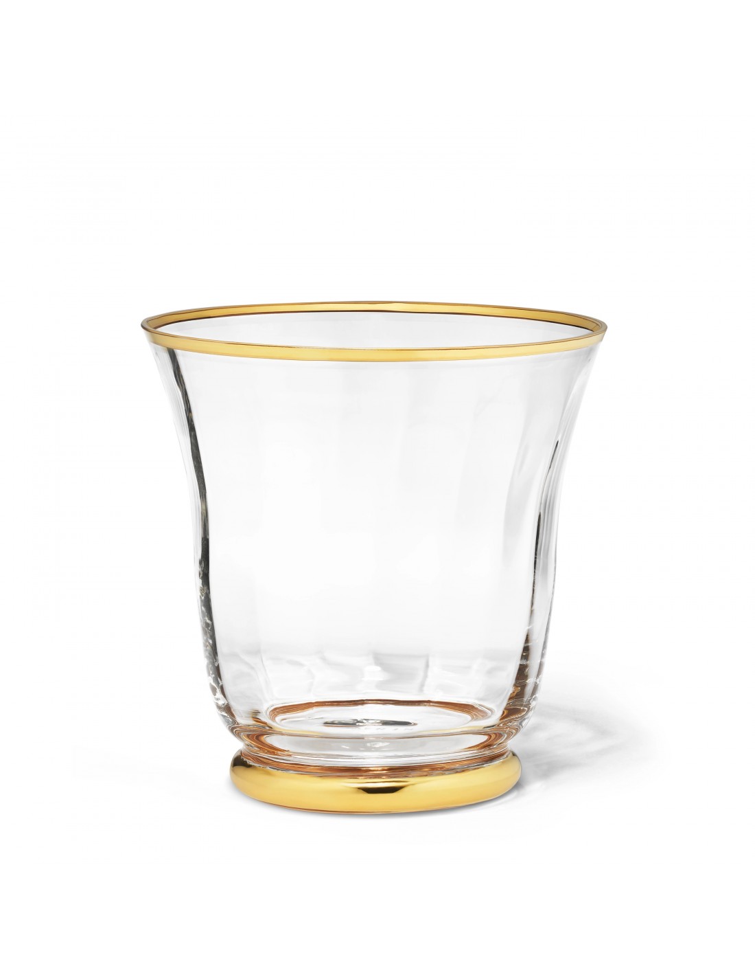 Soplado a mano en Italia y realzado con oro pintado a mano en el borde y la base, este pequeño cubo de hielo es ligeramente estriado y tiene un aspecto vintage que añade un toque sofisticado al entretenimiento.